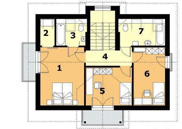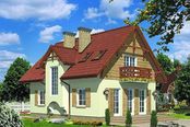 Graficzne opracowanie rzutów poglądowych widocznych na karcie projektu zostało wykonane przez Extradom.pl. Prezentowane przez Extradom.pl wizualizacje wykonane zostały przez autora projektu i należy poczytywać je jedynie za przykład i propozycję wykończenia, wizję architektoniczną autora projektu. Ostateczne wykończenie budynku może nastąpić na wiele sposobów. Szczegółowe rozwiązania zastosowane w oferowanej dokumentacji - w tym również ilość, lokalizacje i wygląd okien, drzwi, kominów - mogą w niewielkim stopniu różnić się od prezentowanej wizualizacji budynku.