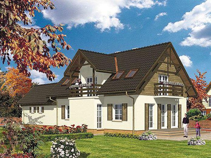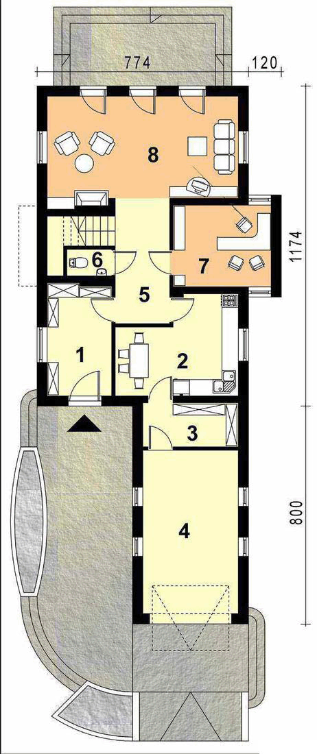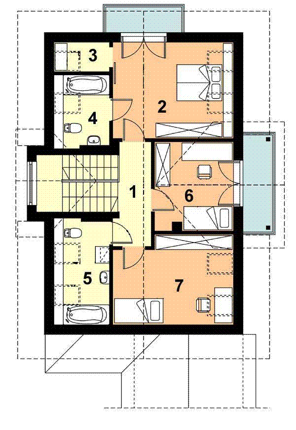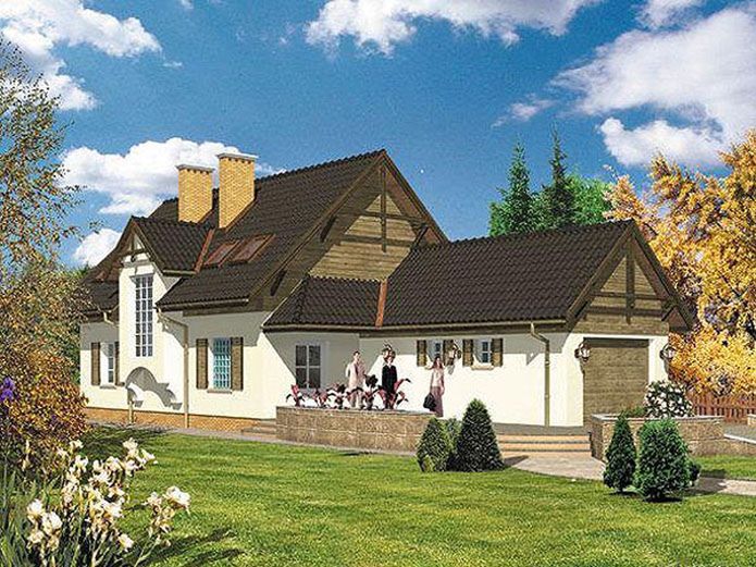 Graficzne opracowanie rzutów poglądowych widocznych na karcie projektu zostało wykonane przez Extradom.pl. Prezentowane przez Extradom.pl wizualizacje wykonane zostały przez autora projektu i należy poczytywać je jedynie za przykład i propozycję wykończenia, wizję architektoniczną autora projektu. Ostateczne wykończenie budynku może nastąpić na wiele sposobów. Szczegółowe rozwiązania zastosowane w oferowanej dokumentacji - w tym również ilość, lokalizacje i wygląd okien, drzwi, kominów - mogą w niewielkim stopniu różnić się od prezentowanej wizualizacji budynku.