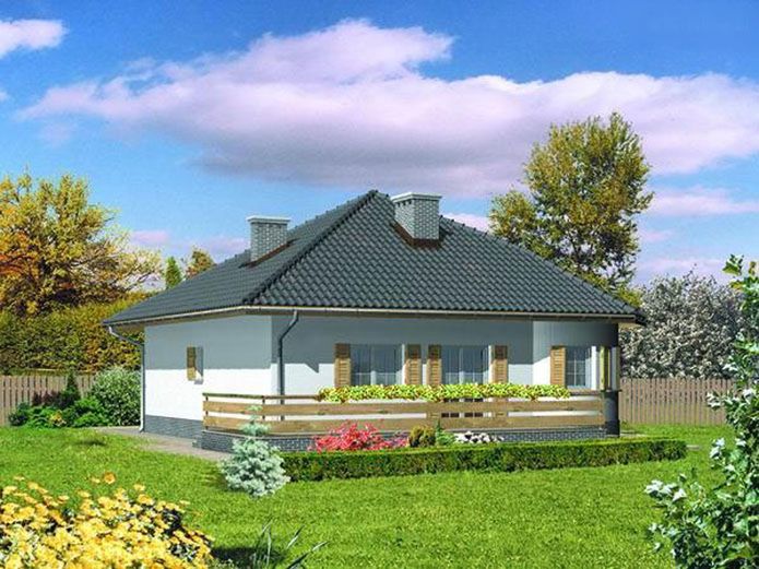 Graficzne opracowanie rzutów poglądowych widocznych na karcie projektu zostało wykonane przez Extradom.pl. Prezentowane przez Extradom.pl wizualizacje wykonane zostały przez autora projektu i należy poczytywać je jedynie za przykład i propozycję wykończenia, wizję architektoniczną autora projektu. Ostateczne wykończenie budynku może nastąpić na wiele sposobów. Szczegółowe rozwiązania zastosowane w oferowanej dokumentacji - w tym również ilość, lokalizacje i wygląd okien, drzwi, kominów - mogą w niewielkim stopniu różnić się od prezentowanej wizualizacji budynku.