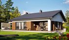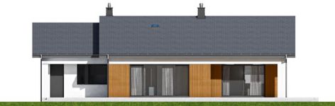 Graficzne opracowanie rzutów poglądowych widocznych na karcie projektu zostało wykonane przez Extradom.pl. Prezentowane przez Extradom.pl wizualizacje wykonane zostały przez autora projektu i należy poczytywać je jedynie za przykład i propozycję wykończenia, wizję architektoniczną autora projektu. Ostateczne wykończenie budynku może nastąpić na wiele sposobów. Szczegółowe rozwiązania zastosowane w oferowanej dokumentacji - w tym również ilość, lokalizacje i wygląd okien, drzwi, kominów - mogą w niewielkim stopniu różnić się od prezentowanej wizualizacji budynku.