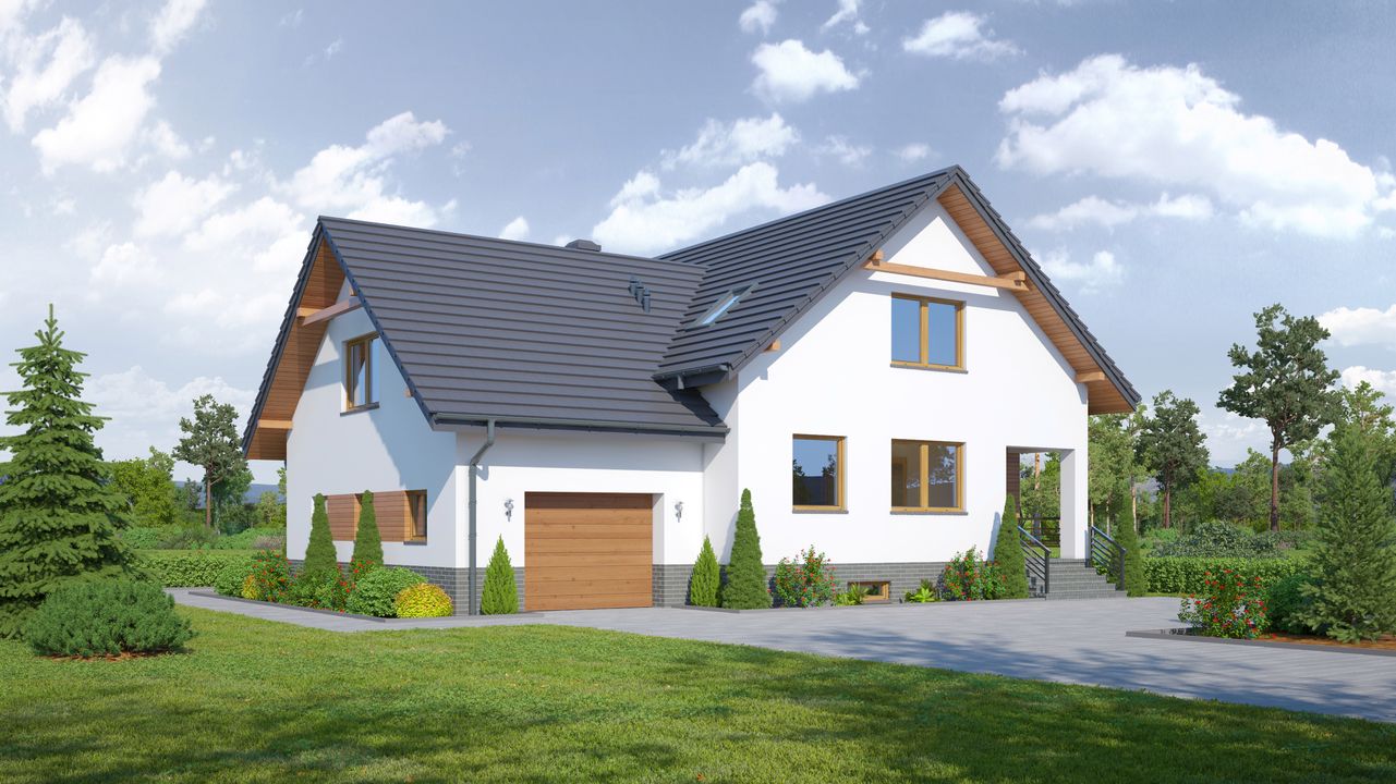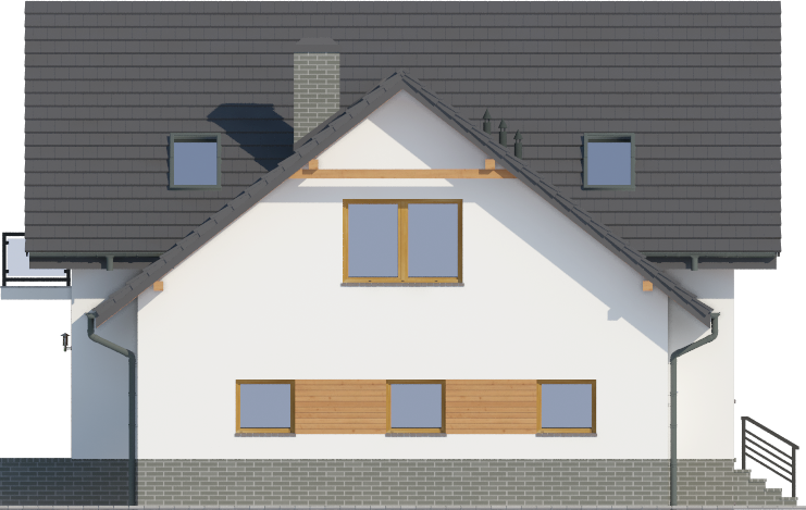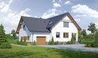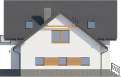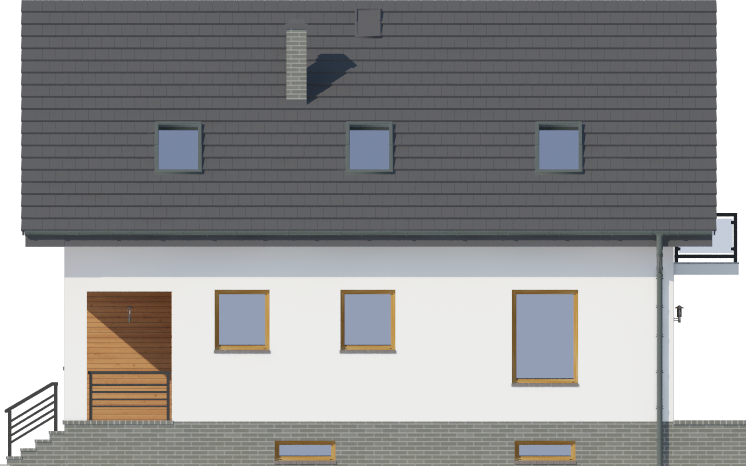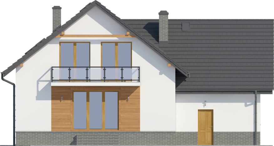 Graficzne opracowanie rzutów poglądowych widocznych na karcie projektu zostało wykonane przez Extradom.pl. Prezentowane przez Extradom.pl wizualizacje wykonane zostały przez autora projektu i należy poczytywać je jedynie za przykład i propozycję wykończenia, wizję architektoniczną autora projektu. Ostateczne wykończenie budynku może nastąpić na wiele sposobów. Szczegółowe rozwiązania zastosowane w oferowanej dokumentacji - w tym również ilość, lokalizacje i wygląd okien, drzwi, kominów - mogą w niewielkim stopniu różnić się od prezentowanej wizualizacji budynku.