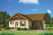 Główne rozwiązania konstrukcyjno-materiałowe: Projektowany budynek zaprojektowano w technologii murowanej. Główną konstrukcję nośną stanowić będą: ławy betonowe zazbrojone konstrukcyjnie, ściany nośne w układzie mieszanym spięte wieńcem opaskowym, dach wielospadowy, oparty na więźbie o konstrukcji drewnianej krokwiowo-jętkowej z drewna klasy C-30 o wilgotności <22% . Projekt składa się z części architektonicznej, konstrukcyjnej, wewnętrznych instalacji sanitarnych, centralnego ogrzewania i instalacji elektrycznej. W projekcie załączone są podstawowe zestawienie stali, drewna i stolarki okienno-drzwiowej. Do projektu dołączamy bezpłatną zgodę na wprowadzenie zmian, oświadczenie projektantów o wykonaniu projektu zgodnie z obowiązującymi normami i przepisami oraz kserokopie uprawnień projektantów wraz z aktualnym wpisem do izby. W przypadku zamówienia projektu w technologii lekkiej, drewnianej konstrukcji szkieletowej, powierzchnia użytkowa budynku jest o około 7% większa.
