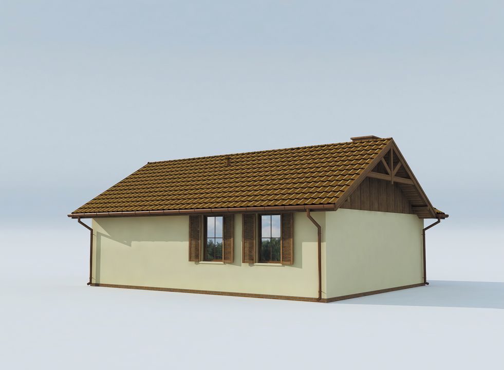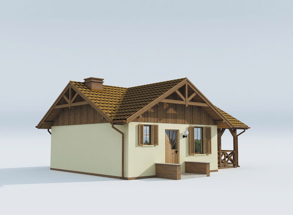 Graficzne opracowanie rzutów poglądowych widocznych na karcie projektu zostało wykonane przez Extradom.pl. Prezentowane przez Extradom.pl wizualizacje wykonane zostały przez autora projektu i należy poczytywać je jedynie za przykład i propozycję wykończenia, wizję architektoniczną autora projektu. Ostateczne wykończenie budynku może nastąpić na wiele sposobów. Szczegółowe rozwiązania zastosowane w oferowanej dokumentacji - w tym również ilość, lokalizacje i wygląd okien, drzwi, kominów - mogą w niewielkim stopniu różnić się od prezentowanej wizualizacji budynku.