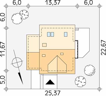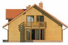 Graficzne opracowanie rzutów poglądowych widocznych na karcie projektu zostało wykonane przez Extradom.pl. Prezentowane przez Extradom.pl wizualizacje wykonane zostały przez autora projektu i należy poczytywać je jedynie za przykład i propozycję wykończenia, wizję architektoniczną autora projektu. Ostateczne wykończenie budynku może nastąpić na wiele sposobów. Szczegółowe rozwiązania zastosowane w oferowanej dokumentacji - w tym również ilość, lokalizacje i wygląd okien, drzwi, kominów - mogą w niewielkim stopniu różnić się od prezentowanej wizualizacji budynku.