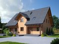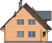 Graficzne opracowanie rzutów poglądowych widocznych na karcie projektu zostało wykonane przez Extradom.pl. Prezentowane przez Extradom.pl wizualizacje wykonane zostały przez autora projektu i należy poczytywać je jedynie za przykład i propozycję wykończenia, wizję architektoniczną autora projektu. Ostateczne wykończenie budynku może nastąpić na wiele sposobów. Szczegółowe rozwiązania zastosowane w oferowanej dokumentacji - w tym również ilość, lokalizacje i wygląd okien, drzwi, kominów - mogą w niewielkim stopniu różnić się od prezentowanej wizualizacji budynku.