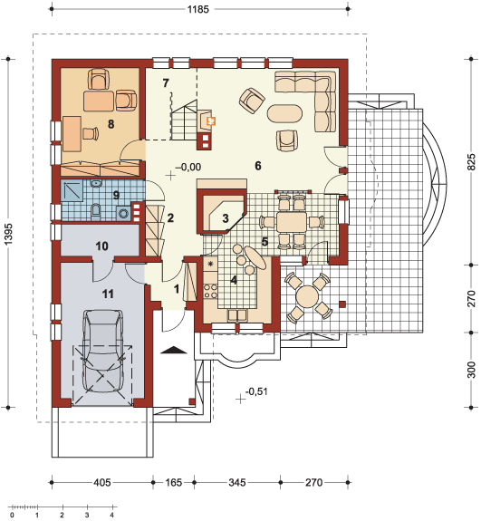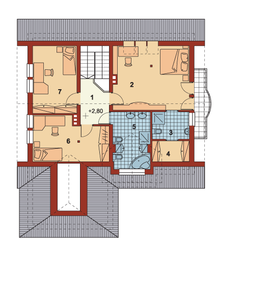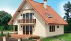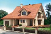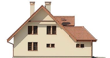 Graficzne opracowanie rzutów poglądowych widocznych na karcie projektu zostało wykonane przez Extradom.pl. Prezentowane przez Extradom.pl wizualizacje wykonane zostały przez autora projektu i należy poczytywać je jedynie za przykład i propozycję wykończenia, wizję architektoniczną autora projektu. Ostateczne wykończenie budynku może nastąpić na wiele sposobów. Szczegółowe rozwiązania zastosowane w oferowanej dokumentacji - w tym również ilość, lokalizacje i wygląd okien, drzwi, kominów - mogą w niewielkim stopniu różnić się od prezentowanej wizualizacji budynku.