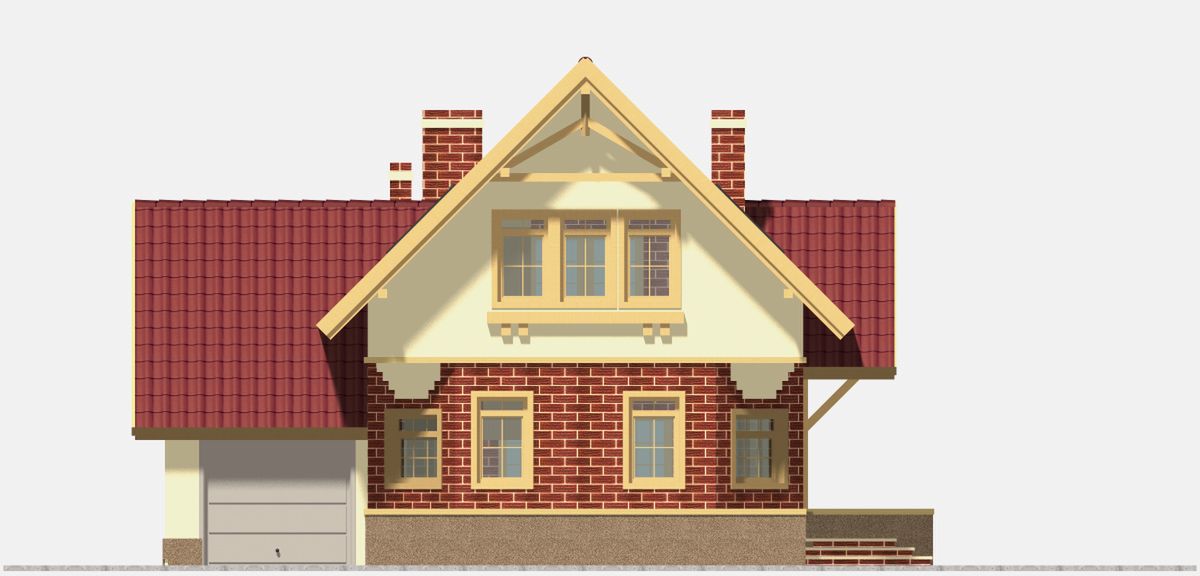 Projekt domu Bolek z garażem 1-st. [A] jest doskonałym rozwiązaniem dla osób posiadających średniej szerokości działkę. Dom cechuje się prostą bryłą, co znacznie ułatwia proces budowy. Projekt należy do kategorii domów z kalenicą skierowaną prostopadle do drogi, co często określane jest w planie zagospodarowania przestrzennego. Projekt został stworzony z myślą o działkach pozwalających na usytuowanie domu w zabudowie wolnostojącej. Projekt można usytuować na granicy działki, dzięki czemu można go zrealizować w zabudowie bliźniaczej. Autor projektu przewidział garaż jednostanowiskowy w linii budynku. Jest to również doskonała propozycja dla osób szukających domu z dachem dwuspadowym, i wykonanie więźby oraz jej pokrycie jest ekonomiczne i nie zajmuje wiele czasu. Projekt dedykowany jest w szczególności osobom posiadającym działkę z wjazdem od strony południowej. Projekt Bolek z garażem 1-st. [A] to dom parterowy z poddaszem użytkowym, co sprawia, że strefa dzienna i nocna są od siebie wyraźnie oddzielone. Uwzględniona w projekcie część dzienna z pewnością zadowoli osoby lubiące cieszyć się wspólnymi chwilami w rodzinnym gronie. Doskonale przemyślane rozwiązania w kuchni dają wiele możliwości aranżacyjnych oraz ułatwią codzienne korzystanie. Usytuowany w salonie kominek sprawi, iż wnętrze stanie się bardziej przytulne. Projekt uwzględnia jedną łazienkę na parterze i dwie na poddaszu. Cztery sypialnie doskonale sprawdzą się w przypadku 4-6 osobowej rodziny. Przestrzeń można wykorzystać także jako pokój dla gości lub gabinet. W domu nie zabrakło również miejsca na praktyczne zaplecze gospodarcze. Rodzinne spotkania w słonecznie dni uprzyjemni przewidziany przy domu taras. Projekt został wykonany w technologii murowanej, dzięki czemu podczas upałów dom utrzymuje przyjemny chłód. W jego bryle widoczne są rozwiązania nawiązujące do stylu tradycyjnego, dlatego będzie prezentować się doskonale niezależnie od okolicy.