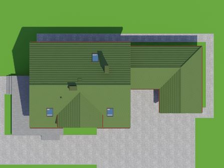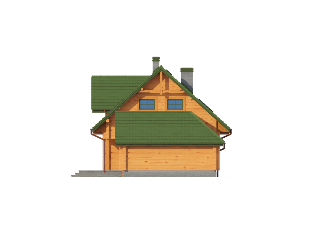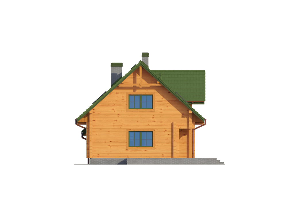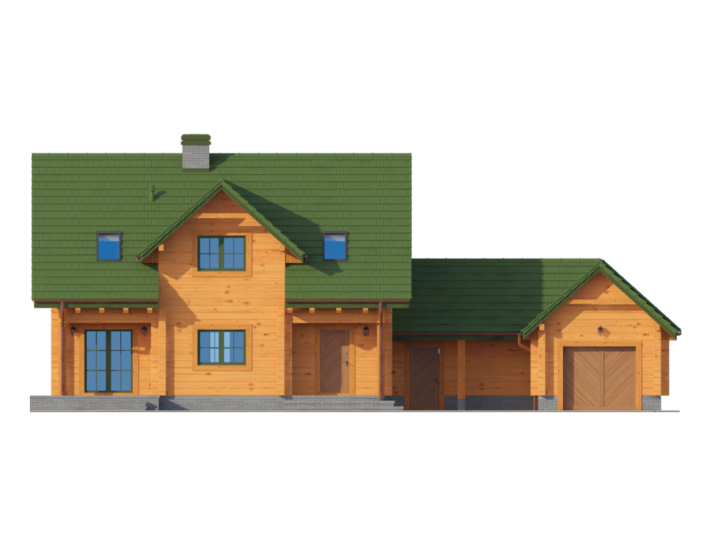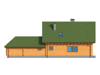 Graficzne opracowanie rzutów poglądowych widocznych na karcie projektu zostało wykonane przez Extradom.pl. Prezentowane przez Extradom.pl wizualizacje wykonane zostały przez autora projektu i należy poczytywać je jedynie za przykład i propozycję wykończenia, wizję architektoniczną autora projektu. Ostateczne wykończenie budynku może nastąpić na wiele sposobów. Szczegółowe rozwiązania zastosowane w oferowanej dokumentacji - w tym również ilość, lokalizacje i wygląd okien, drzwi, kominów - mogą w niewielkim stopniu różnić się od prezentowanej wizualizacji budynku.