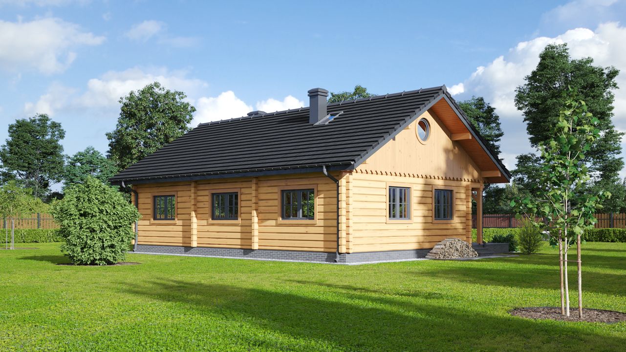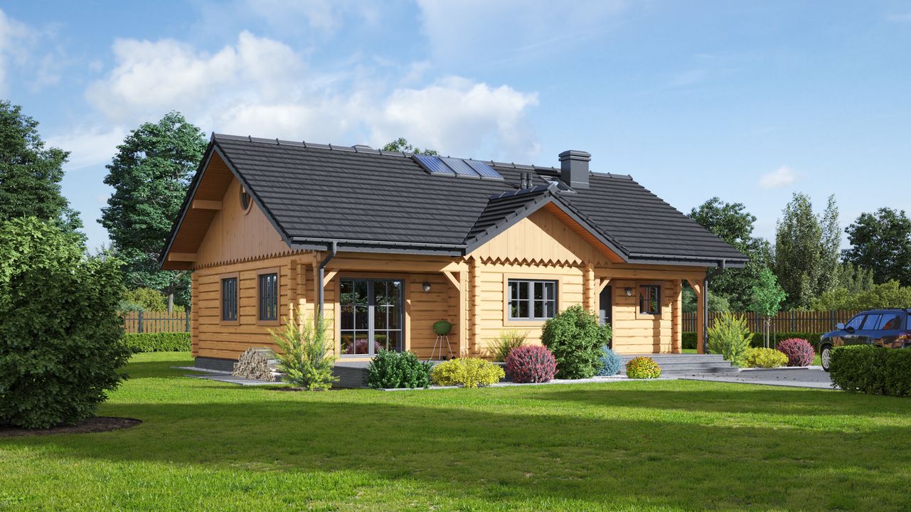 Strop: drewniany. Pokrycie dachu: dachówka gontopodobna Gerard Corona. Ściany zewnętrzne: płazy drewniane + wełna mineralna + deska. Ściany wewnętrzne: płazy drewniane. Typ ogrzewania: kocioł gazowy. Instalacje dodatkowe: instalacja solarna.