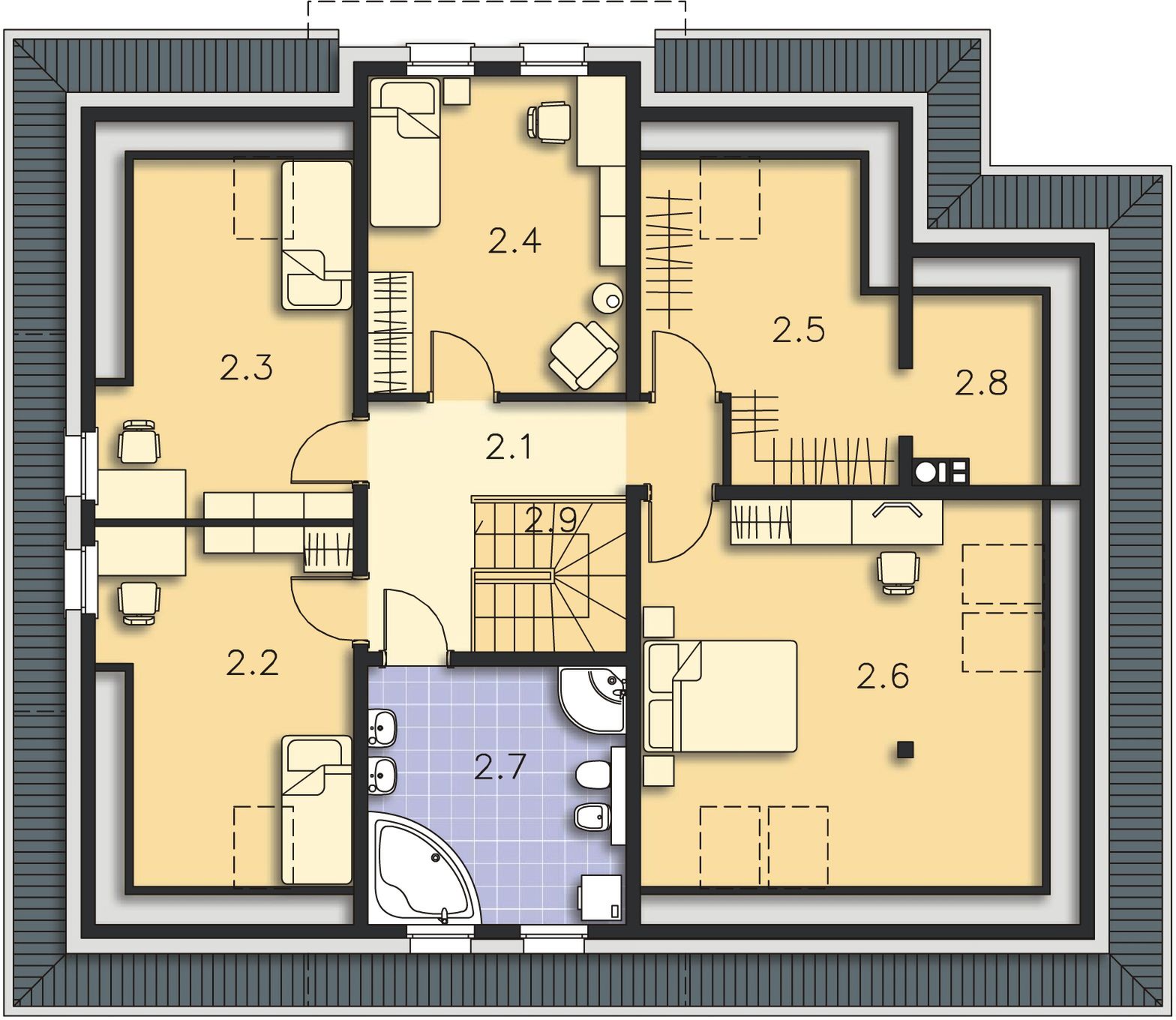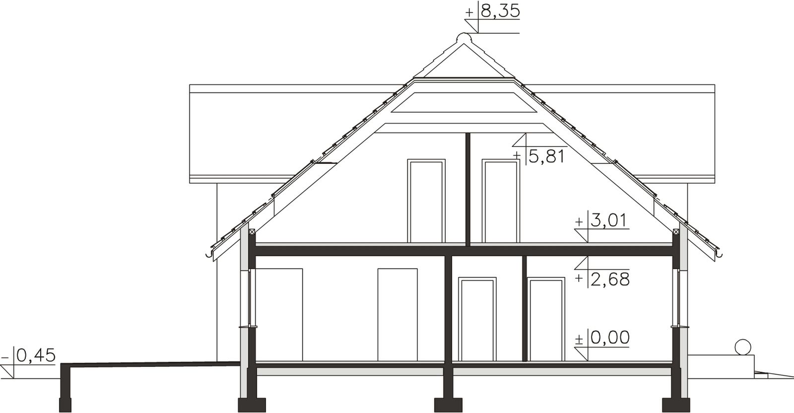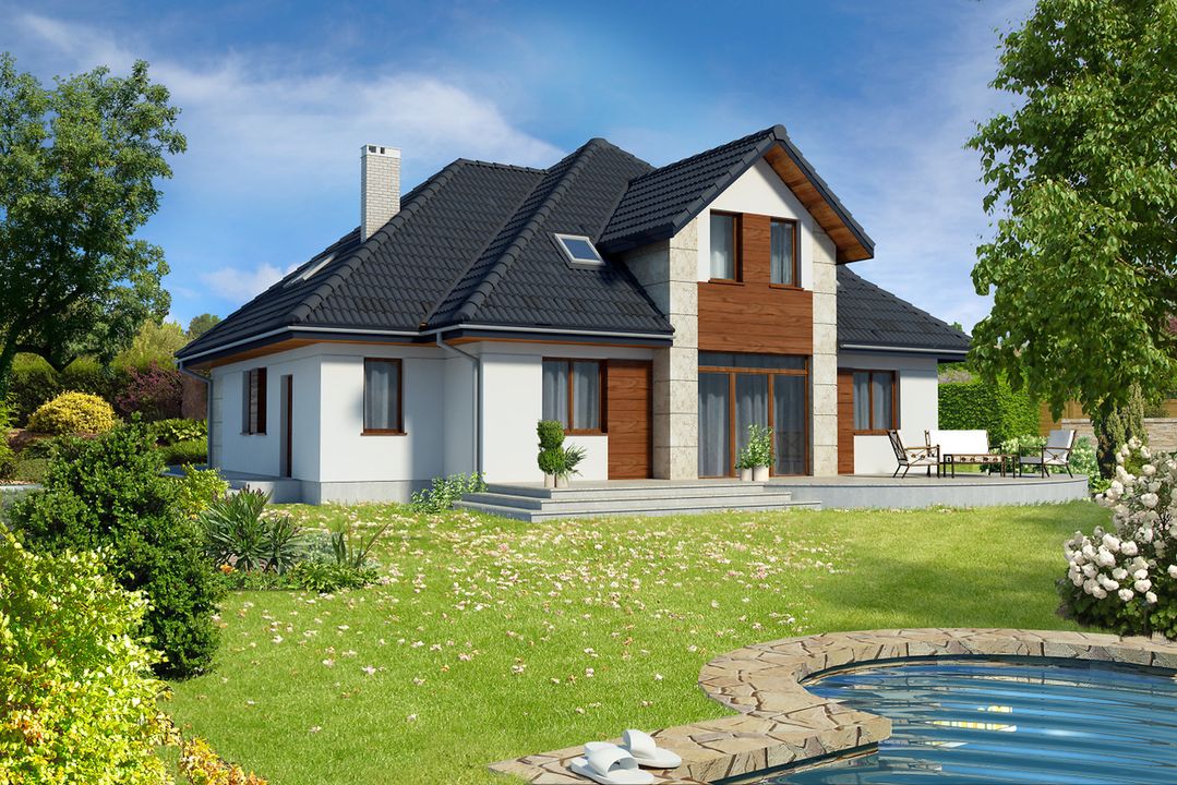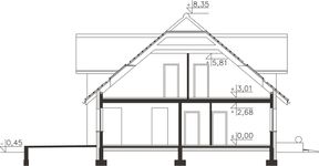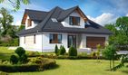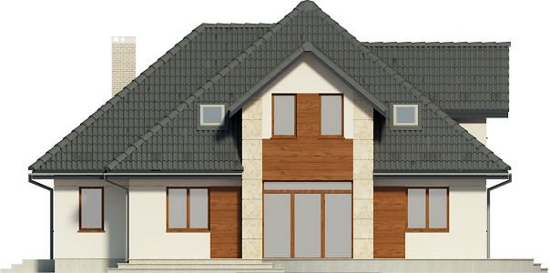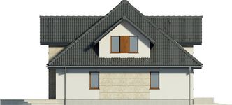 Graficzne opracowanie rzutów poglądowych widocznych na karcie projektu zostało wykonane przez Extradom.pl. Prezentowane przez Extradom.pl wizualizacje wykonane zostały przez autora projektu i należy poczytywać je jedynie za przykład i propozycję wykończenia, wizję architektoniczną autora projektu. Ostateczne wykończenie budynku może nastąpić na wiele sposobów. Szczegółowe rozwiązania zastosowane w oferowanej dokumentacji - w tym również ilość, lokalizacje i wygląd okien, drzwi, kominów - mogą w niewielkim stopniu różnić się od prezentowanej wizualizacji budynku.