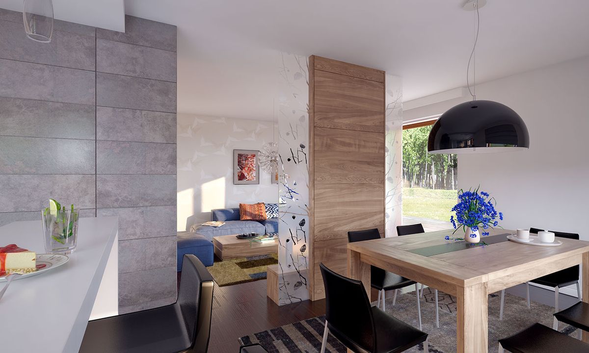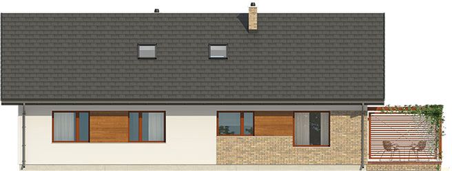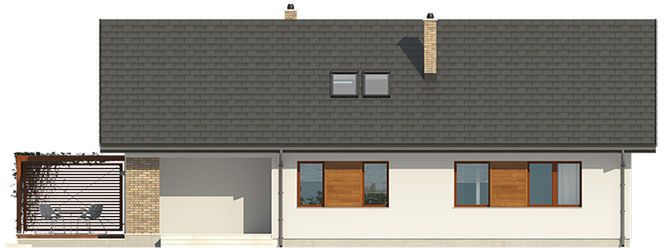 Graficzne opracowanie rzutów poglądowych widocznych na karcie projektu zostało wykonane przez Extradom.pl. Prezentowane przez Extradom.pl wizualizacje wykonane zostały przez autora projektu i należy poczytywać je jedynie za przykład i propozycję wykończenia, wizję architektoniczną autora projektu. Ostateczne wykończenie budynku może nastąpić na wiele sposobów. Szczegółowe rozwiązania zastosowane w oferowanej dokumentacji - w tym również ilość, lokalizacje i wygląd okien, drzwi, kominów - mogą w niewielkim stopniu różnić się od prezentowanej wizualizacji budynku.