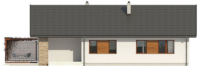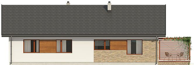 Graficzne opracowanie rzutów poglądowych widocznych na karcie projektu zostało wykonane przez Extradom.pl. Prezentowane przez Extradom.pl wizualizacje wykonane zostały przez autora projektu i należy poczytywać je jedynie za przykład i propozycję wykończenia, wizję architektoniczną autora projektu. Ostateczne wykończenie budynku może nastąpić na wiele sposobów. Szczegółowe rozwiązania zastosowane w oferowanej dokumentacji - w tym również ilość, lokalizacje i wygląd okien, drzwi, kominów - mogą w niewielkim stopniu różnić się od prezentowanej wizualizacji budynku.