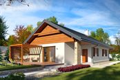 Graficzne opracowanie rzutów poglądowych widocznych na karcie projektu zostało wykonane przez Extradom.pl. Prezentowane przez Extradom.pl wizualizacje wykonane zostały przez autora projektu i należy poczytywać je jedynie za przykład i propozycję wykończenia, wizję architektoniczną autora projektu. Ostateczne wykończenie budynku może nastąpić na wiele sposobów. Szczegółowe rozwiązania zastosowane w oferowanej dokumentacji - w tym również ilość, lokalizacje i wygląd okien, drzwi, kominów - mogą w niewielkim stopniu różnić się od prezentowanej wizualizacji budynku.