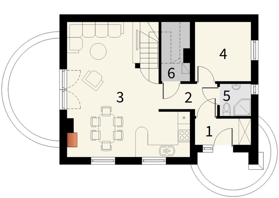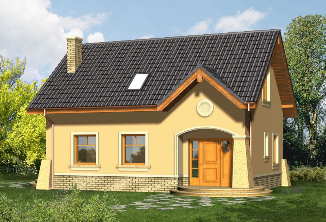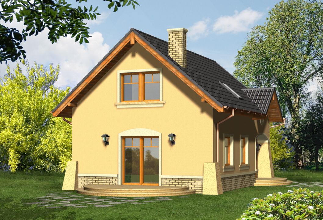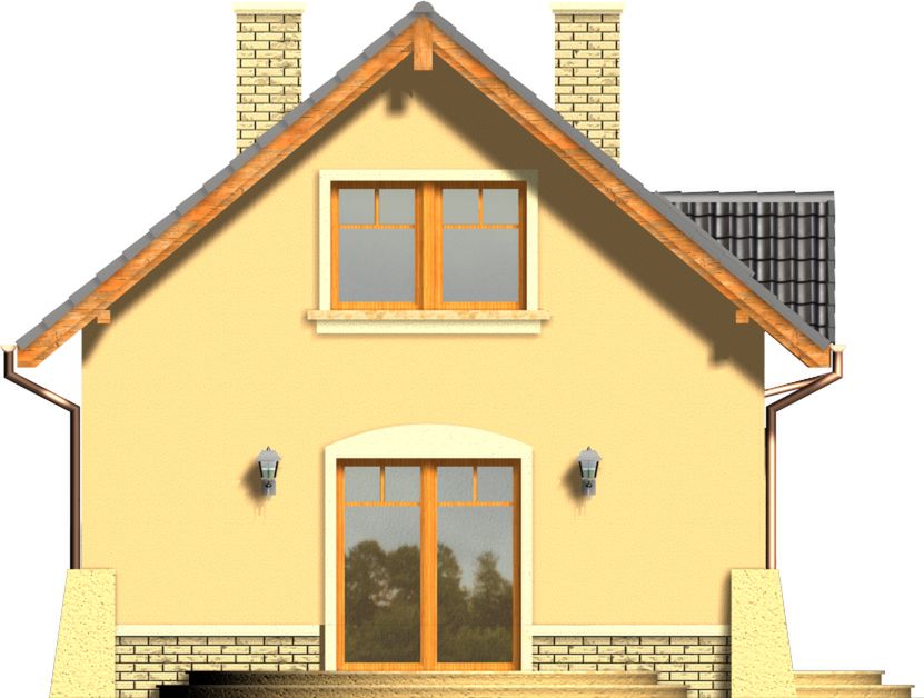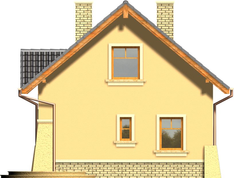 Graficzne opracowanie rzutów poglądowych widocznych na karcie projektu zostało wykonane przez Extradom.pl. Prezentowane przez Extradom.pl wizualizacje wykonane zostały przez autora projektu i należy poczytywać je jedynie za przykład i propozycję wykończenia, wizję architektoniczną autora projektu. Ostateczne wykończenie budynku może nastąpić na wiele sposobów. Szczegółowe rozwiązania zastosowane w oferowanej dokumentacji - w tym również ilość, lokalizacje i wygląd okien, drzwi, kominów - mogą w niewielkim stopniu różnić się od prezentowanej wizualizacji budynku.