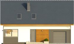 Graficzne opracowanie rzutów poglądowych widocznych na karcie projektu zostało wykonane przez Extradom.pl. Prezentowane przez Extradom.pl wizualizacje wykonane zostały przez autora projektu i należy poczytywać je jedynie za przykład i propozycję wykończenia, wizję architektoniczną autora projektu. Ostateczne wykończenie budynku może nastąpić na wiele sposobów. Szczegółowe rozwiązania zastosowane w oferowanej dokumentacji - w tym również ilość, lokalizacje i wygląd okien, drzwi, kominów - mogą w niewielkim stopniu różnić się od prezentowanej wizualizacji budynku.