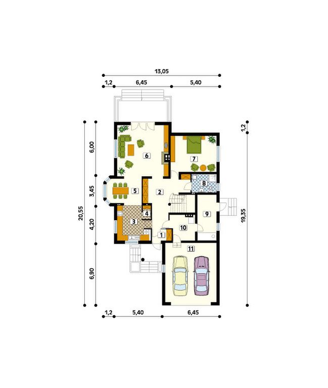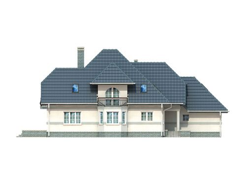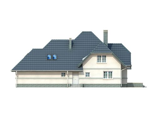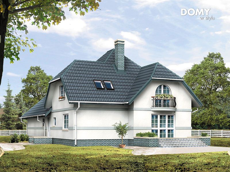 Graficzne opracowanie rzutów poglądowych widocznych na karcie projektu zostało wykonane przez Extradom.pl. Prezentowane przez Extradom.pl wizualizacje wykonane zostały przez autora projektu i należy poczytywać je jedynie za przykład i propozycję wykończenia, wizję architektoniczną autora projektu. Ostateczne wykończenie budynku może nastąpić na wiele sposobów. Szczegółowe rozwiązania zastosowane w oferowanej dokumentacji - w tym również ilość, lokalizacje i wygląd okien, drzwi, kominów - mogą w niewielkim stopniu różnić się od prezentowanej wizualizacji budynku.