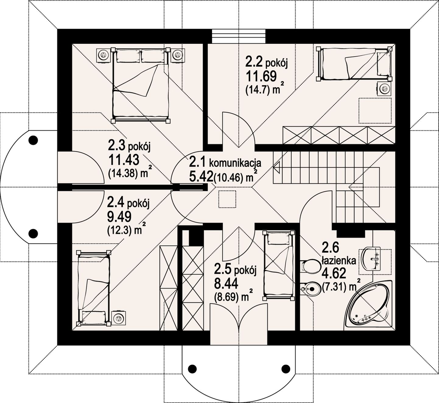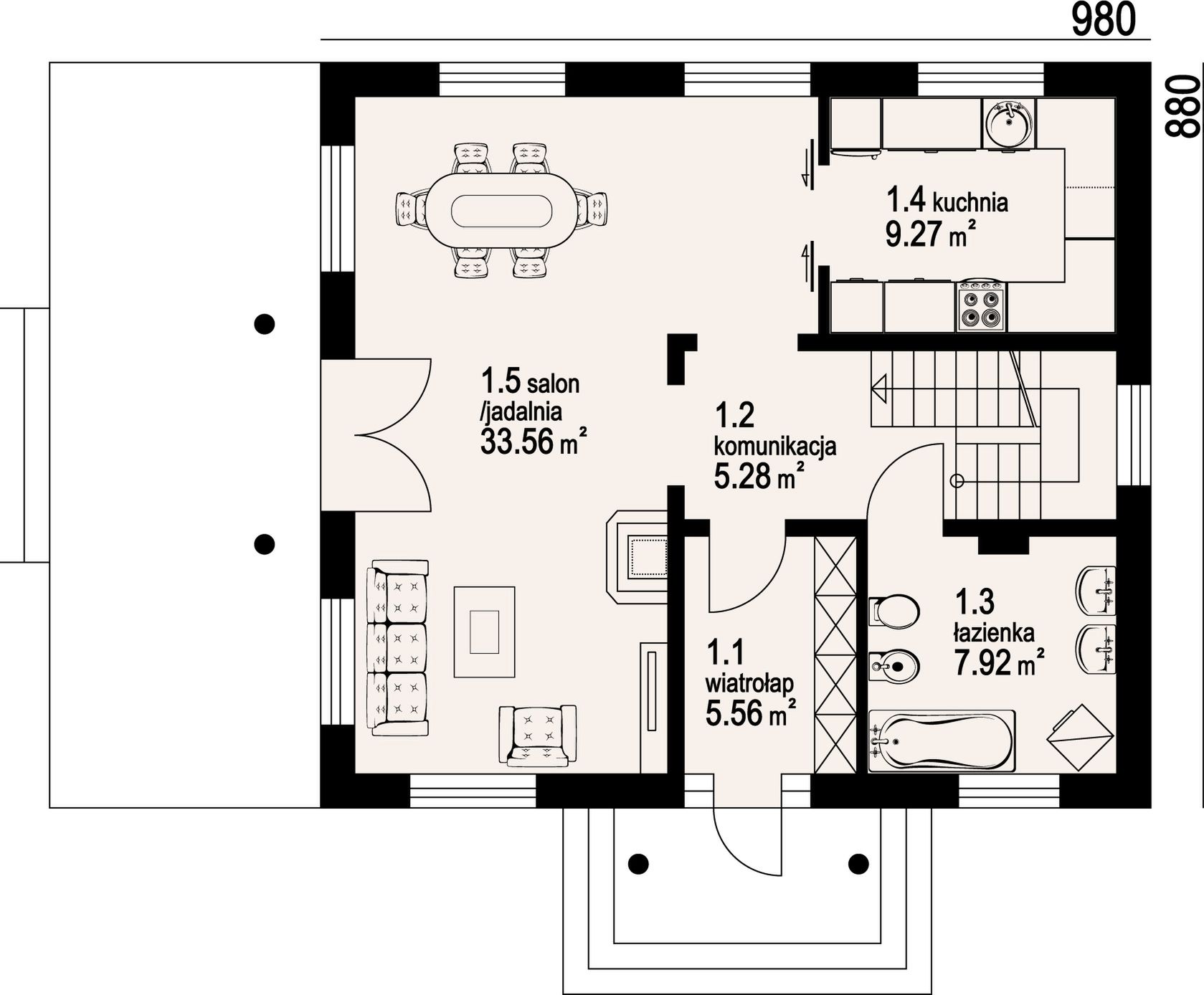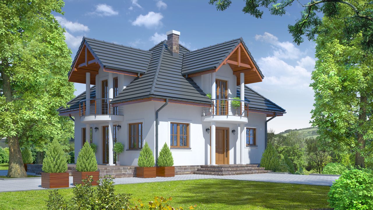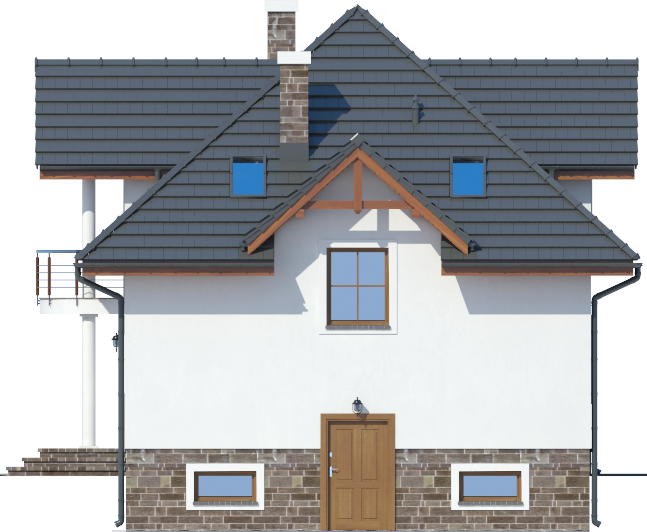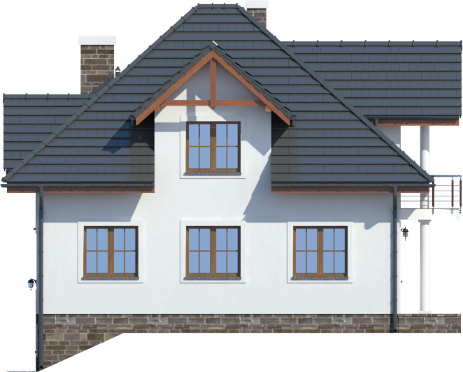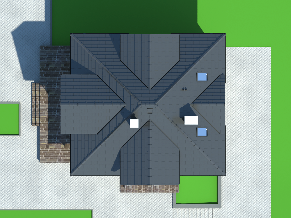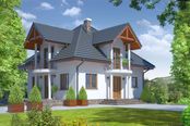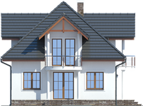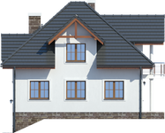 Graficzne opracowanie rzutów poglądowych widocznych na karcie projektu zostało wykonane przez Extradom.pl. Prezentowane przez Extradom.pl wizualizacje wykonane zostały przez autora projektu i należy poczytywać je jedynie za przykład i propozycję wykończenia, wizję architektoniczną autora projektu. Ostateczne wykończenie budynku może nastąpić na wiele sposobów. Szczegółowe rozwiązania zastosowane w oferowanej dokumentacji - w tym również ilość, lokalizacje i wygląd okien, drzwi, kominów - mogą w niewielkim stopniu różnić się od prezentowanej wizualizacji budynku.