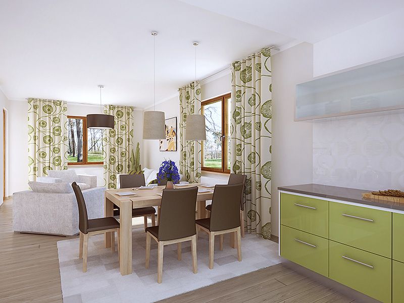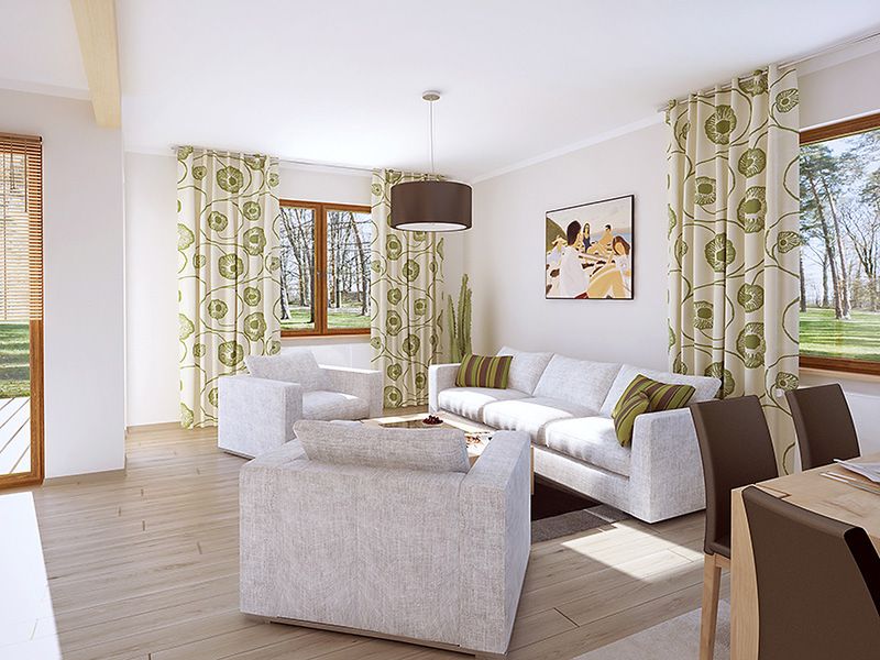 Graficzne opracowanie rzutów poglądowych widocznych na karcie projektu zostało wykonane przez Extradom.pl. Prezentowane przez Extradom.pl wizualizacje wykonane zostały przez autora projektu i należy poczytywać je jedynie za przykład i propozycję wykończenia, wizję architektoniczną autora projektu. Ostateczne wykończenie budynku może nastąpić na wiele sposobów. Szczegółowe rozwiązania zastosowane w oferowanej dokumentacji - w tym również ilość, lokalizacje i wygląd okien, drzwi, kominów - mogą w niewielkim stopniu różnić się od prezentowanej wizualizacji budynku.