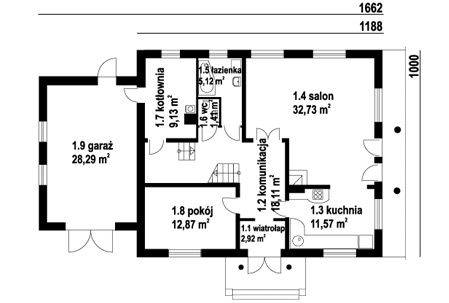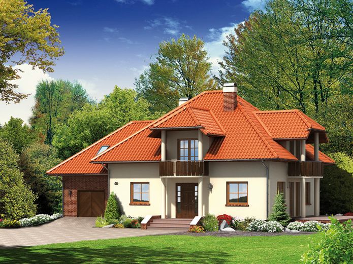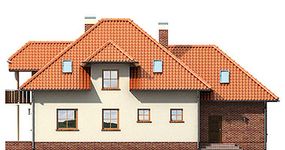 Graficzne opracowanie rzutów poglądowych widocznych na karcie projektu zostało wykonane przez Extradom.pl. Prezentowane przez Extradom.pl wizualizacje wykonane zostały przez autora projektu i należy poczytywać je jedynie za przykład i propozycję wykończenia, wizję architektoniczną autora projektu. Ostateczne wykończenie budynku może nastąpić na wiele sposobów. Szczegółowe rozwiązania zastosowane w oferowanej dokumentacji - w tym również ilość, lokalizacje i wygląd okien, drzwi, kominów - mogą w niewielkim stopniu różnić się od prezentowanej wizualizacji budynku.