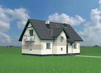 Graficzne opracowanie rzutów poglądowych widocznych na karcie projektu zostało wykonane przez Extradom.pl. Prezentowane przez Extradom.pl wizualizacje wykonane zostały przez autora projektu i należy poczytywać je jedynie za przykład i propozycję wykończenia, wizję architektoniczną autora projektu. Ostateczne wykończenie budynku może nastąpić na wiele sposobów. Szczegółowe rozwiązania zastosowane w oferowanej dokumentacji - w tym również ilość, lokalizacje i wygląd okien, drzwi, kominów - mogą w niewielkim stopniu różnić się od prezentowanej wizualizacji budynku.