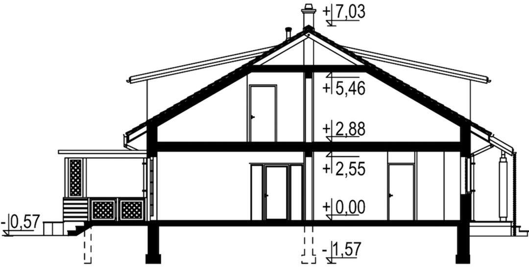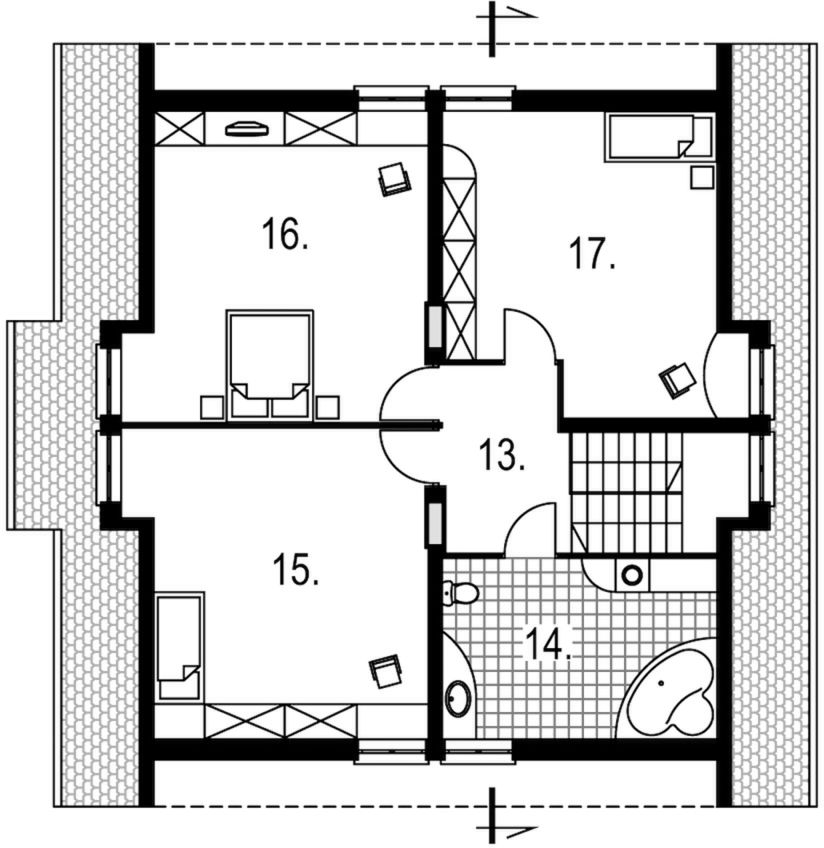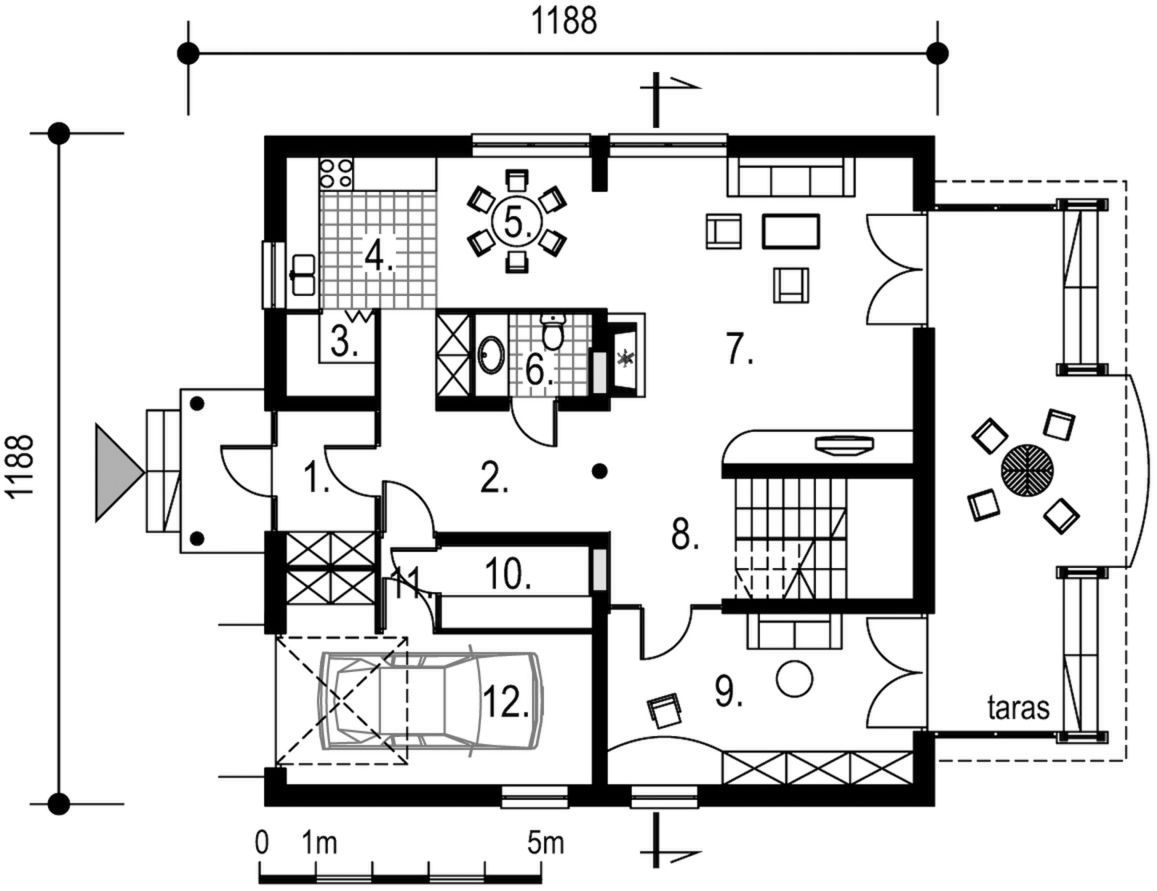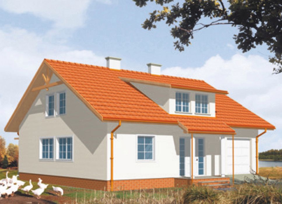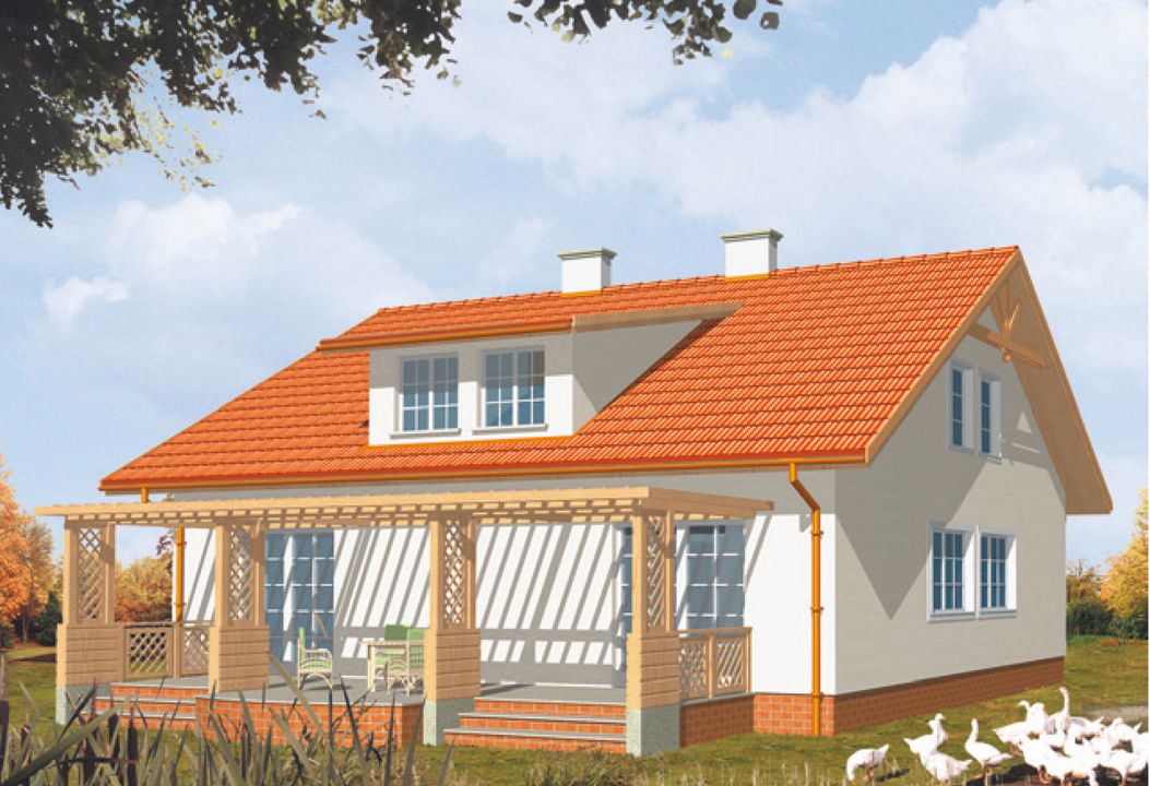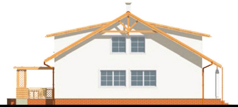 Graficzne opracowanie rzutów poglądowych widocznych na karcie projektu zostało wykonane przez Extradom.pl. Prezentowane przez Extradom.pl wizualizacje wykonane zostały przez autora projektu i należy poczytywać je jedynie za przykład i propozycję wykończenia, wizję architektoniczną autora projektu. Ostateczne wykończenie budynku może nastąpić na wiele sposobów. Szczegółowe rozwiązania zastosowane w oferowanej dokumentacji - w tym również ilość, lokalizacje i wygląd okien, drzwi, kominów - mogą w niewielkim stopniu różnić się od prezentowanej wizualizacji budynku.