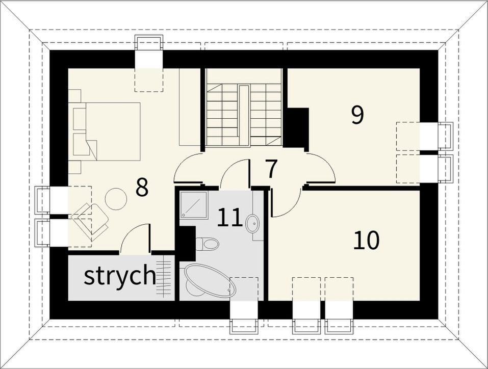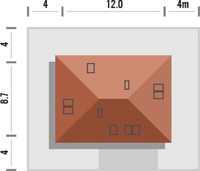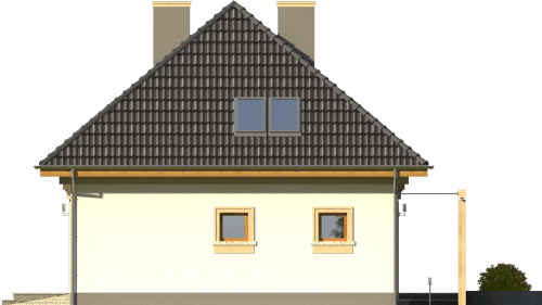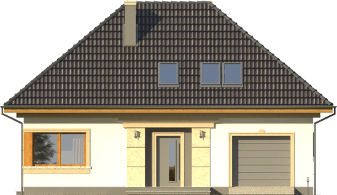 Graficzne opracowanie rzutów poglądowych widocznych na karcie projektu zostało wykonane przez Extradom.pl. Prezentowane przez Extradom.pl wizualizacje wykonane zostały przez autora projektu i należy poczytywać je jedynie za przykład i propozycję wykończenia, wizję architektoniczną autora projektu. Ostateczne wykończenie budynku może nastąpić na wiele sposobów. Szczegółowe rozwiązania zastosowane w oferowanej dokumentacji - w tym również ilość, lokalizacje i wygląd okien, drzwi, kominów - mogą w niewielkim stopniu różnić się od prezentowanej wizualizacji budynku.