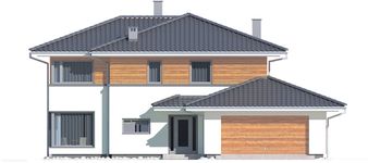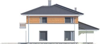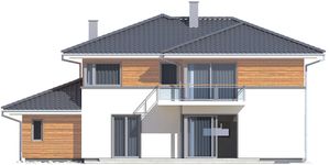 Graficzne opracowanie rzutów poglądowych widocznych na karcie projektu zostało wykonane przez Extradom.pl. Prezentowane przez Extradom.pl wizualizacje wykonane zostały przez autora projektu i należy poczytywać je jedynie za przykład i propozycję wykończenia, wizję architektoniczną autora projektu. Ostateczne wykończenie budynku może nastąpić na wiele sposobów. Szczegółowe rozwiązania zastosowane w oferowanej dokumentacji - w tym również ilość, lokalizacje i wygląd okien, drzwi, kominów - mogą w niewielkim stopniu różnić się od prezentowanej wizualizacji budynku.