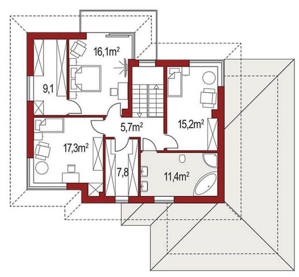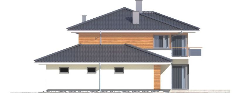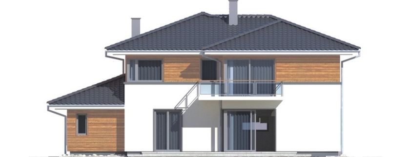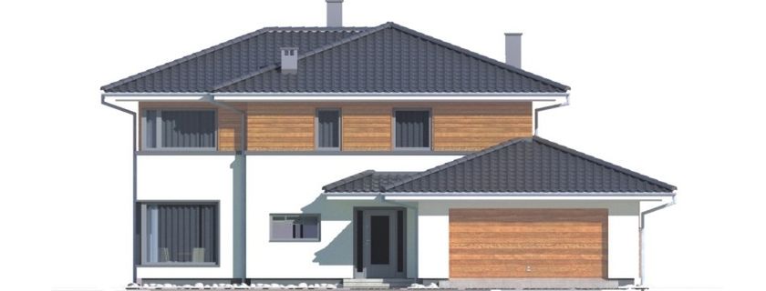 Graficzne opracowanie rzutów poglądowych widocznych na karcie projektu zostało wykonane przez Extradom.pl. Prezentowane przez Extradom.pl wizualizacje wykonane zostały przez autora projektu i należy poczytywać je jedynie za przykład i propozycję wykończenia, wizję architektoniczną autora projektu. Ostateczne wykończenie budynku może nastąpić na wiele sposobów. Szczegółowe rozwiązania zastosowane w oferowanej dokumentacji - w tym również ilość, lokalizacje i wygląd okien, drzwi, kominów - mogą w niewielkim stopniu różnić się od prezentowanej wizualizacji budynku.