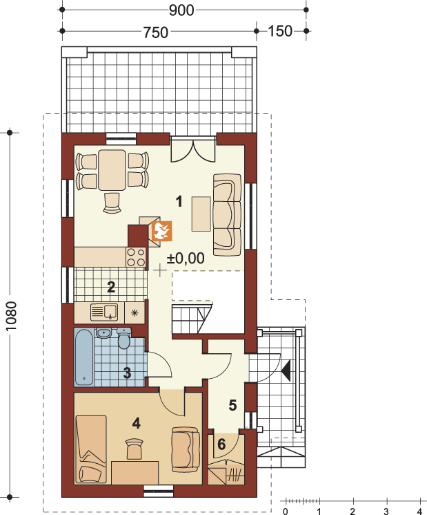 Graficzne opracowanie rzutów poglądowych widocznych na karcie projektu zostało wykonane przez Extradom.pl. Prezentowane przez Extradom.pl wizualizacje wykonane zostały przez autora projektu i należy poczytywać je jedynie za przykład i propozycję wykończenia, wizję architektoniczną autora projektu. Ostateczne wykończenie budynku może nastąpić na wiele sposobów. Szczegółowe rozwiązania zastosowane w oferowanej dokumentacji - w tym również ilość, lokalizacje i wygląd okien, drzwi, kominów - mogą w niewielkim stopniu różnić się od prezentowanej wizualizacji budynku.