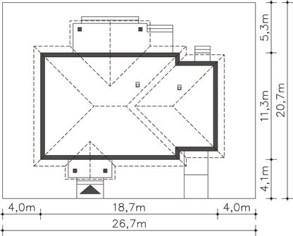 Graficzne opracowanie rzutów poglądowych widocznych na karcie projektu zostało wykonane przez Extradom.pl. Prezentowane przez Extradom.pl wizualizacje wykonane zostały przez autora projektu i należy poczytywać je jedynie za przykład i propozycję wykończenia, wizję architektoniczną autora projektu. Ostateczne wykończenie budynku może nastąpić na wiele sposobów. Szczegółowe rozwiązania zastosowane w oferowanej dokumentacji - w tym również ilość, lokalizacje i wygląd okien, drzwi, kominów - mogą w niewielkim stopniu różnić się od prezentowanej wizualizacji budynku.