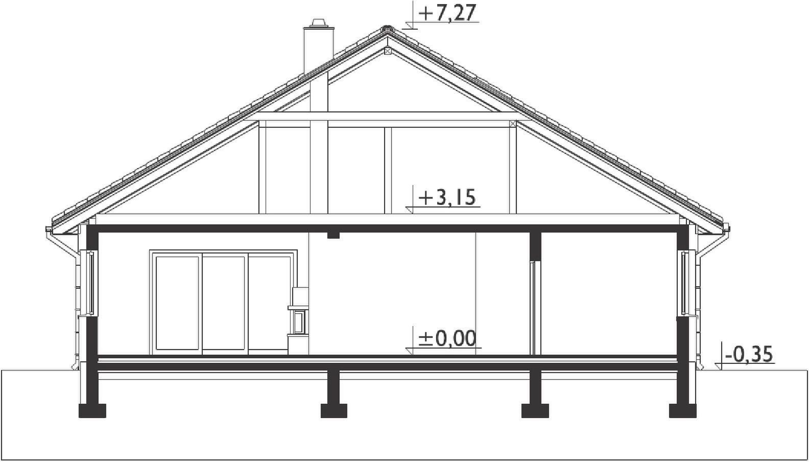 Graficzne opracowanie rzutów poglądowych widocznych na karcie projektu zostało wykonane przez Extradom.pl. Prezentowane przez Extradom.pl wizualizacje wykonane zostały przez autora projektu i należy poczytywać je jedynie za przykład i propozycję wykończenia, wizję architektoniczną autora projektu. Ostateczne wykończenie budynku może nastąpić na wiele sposobów. Szczegółowe rozwiązania zastosowane w oferowanej dokumentacji - w tym również ilość, lokalizacje i wygląd okien, drzwi, kominów - mogą w niewielkim stopniu różnić się od prezentowanej wizualizacji budynku.
