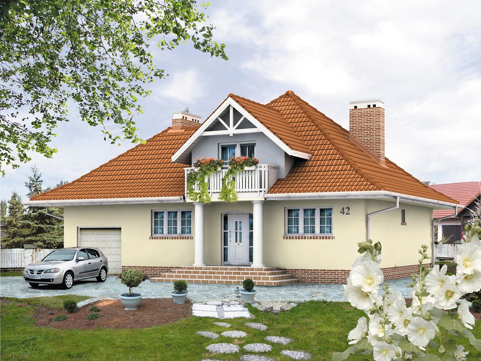 Dach: dachówka, kąt nachylenia 40°. Stropy: żelbetowe, wylewane. Ściany: w systemie YTONG 36,5 cm. Ogrzewanie: gazowe.