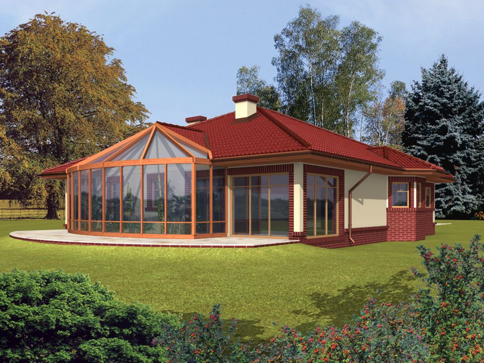 Graficzne opracowanie rzutów poglądowych widocznych na karcie projektu zostało wykonane przez Extradom.pl. Prezentowane przez Extradom.pl wizualizacje wykonane zostały przez autora projektu i należy poczytywać je jedynie za przykład i propozycję wykończenia, wizję architektoniczną autora projektu. Ostateczne wykończenie budynku może nastąpić na wiele sposobów. Szczegółowe rozwiązania zastosowane w oferowanej dokumentacji - w tym również ilość, lokalizacje i wygląd okien, drzwi, kominów - mogą w niewielkim stopniu różnić się od prezentowanej wizualizacji budynku.
