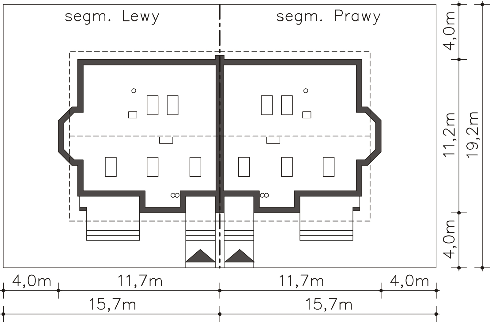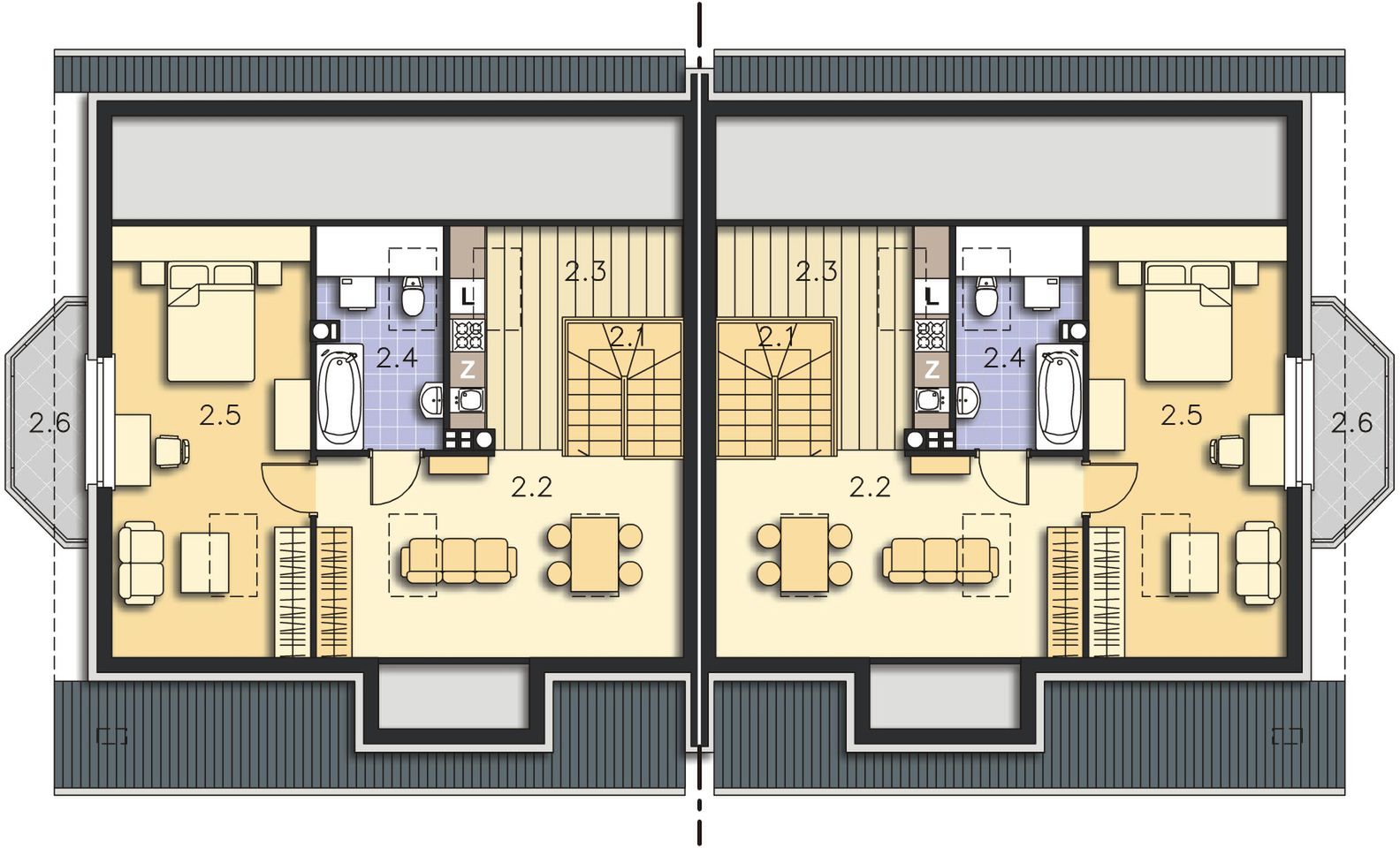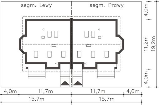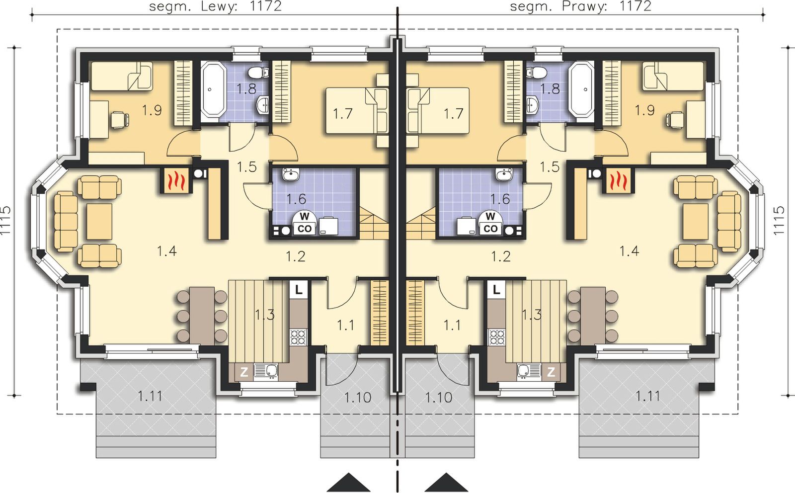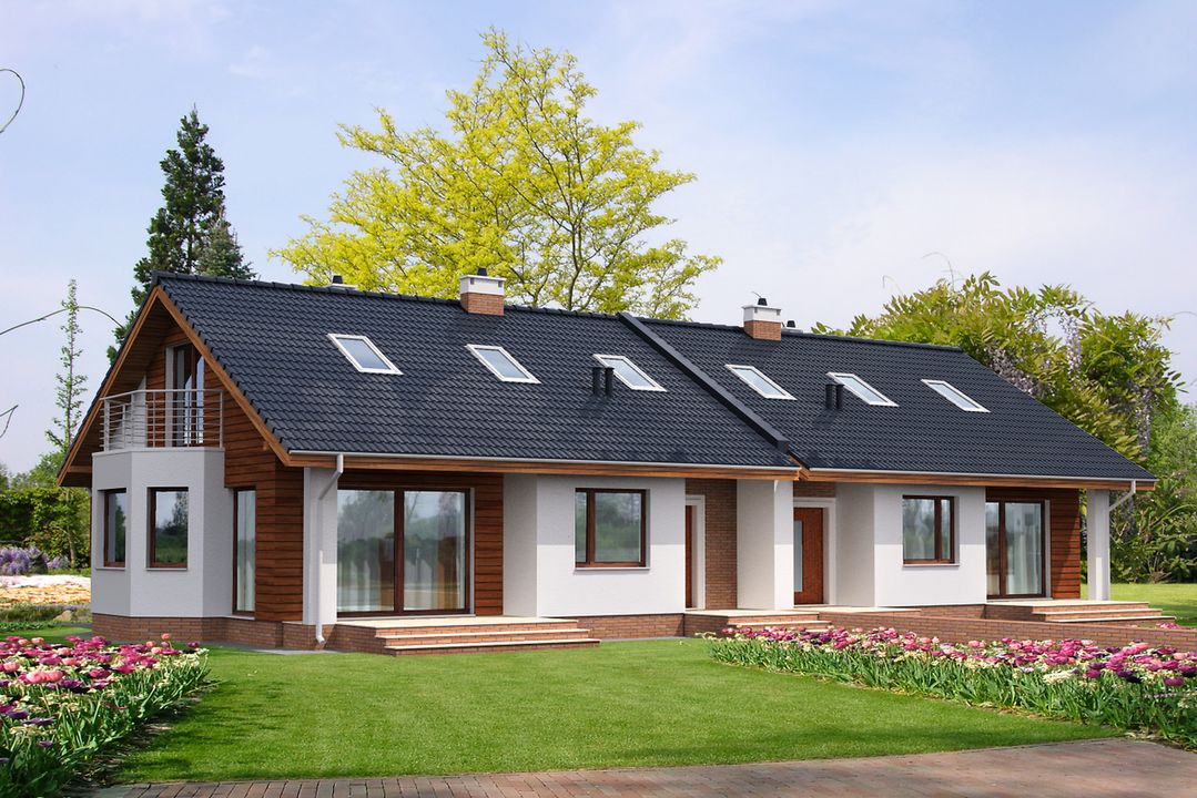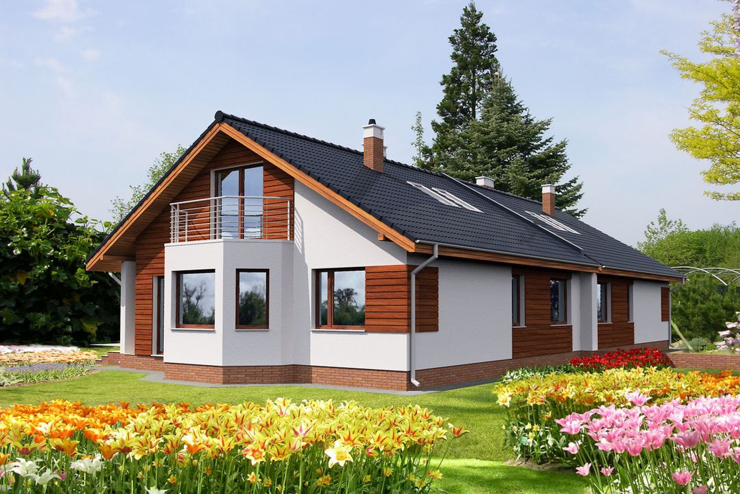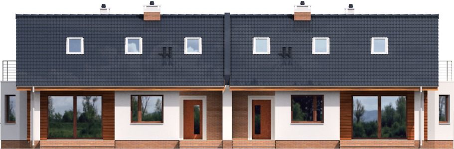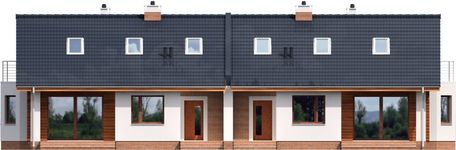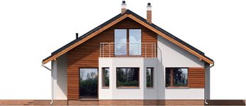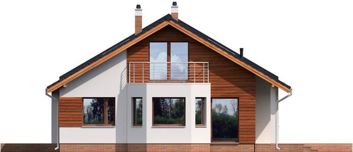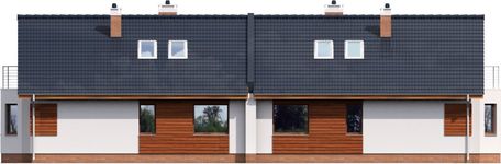 Graficzne opracowanie rzutów poglądowych widocznych na karcie projektu zostało wykonane przez Extradom.pl. Prezentowane przez Extradom.pl wizualizacje wykonane zostały przez autora projektu i należy poczytywać je jedynie za przykład i propozycję wykończenia, wizję architektoniczną autora projektu. Ostateczne wykończenie budynku może nastąpić na wiele sposobów. Szczegółowe rozwiązania zastosowane w oferowanej dokumentacji - w tym również ilość, lokalizacje i wygląd okien, drzwi, kominów - mogą w niewielkim stopniu różnić się od prezentowanej wizualizacji budynku.