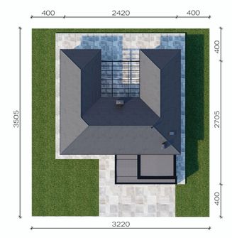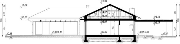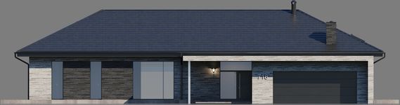Graficzne opracowanie rzutów poglądowych widocznych na karcie projektu zostało wykonane przez Extradom.pl. Prezentowane przez Extradom.pl wizualizacje wykonane zostały przez autora projektu i należy poczytywać je jedynie za przykład i propozycję wykończenia, wizję architektoniczną autora projektu. Ostateczne wykończenie budynku może nastąpić na wiele sposobów. Szczegółowe rozwiązania zastosowane w oferowanej dokumentacji - w tym również ilość, lokalizacje i wygląd okien, drzwi, kominów - mogą w niewielkim stopniu różnić się od prezentowanej wizualizacji budynku.