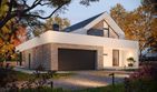 Graficzne opracowanie rzutów poglądowych widocznych na karcie projektu zostało wykonane przez Extradom.pl. Prezentowane przez Extradom.pl wizualizacje wykonane zostały przez autora projektu i należy poczytywać je jedynie za przykład i propozycję wykończenia, wizję architektoniczną autora projektu. Ostateczne wykończenie budynku może nastąpić na wiele sposobów. Szczegółowe rozwiązania zastosowane w oferowanej dokumentacji - w tym również ilość, lokalizacje i wygląd okien, drzwi, kominów - mogą w niewielkim stopniu różnić się od prezentowanej wizualizacji budynku.
