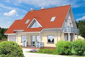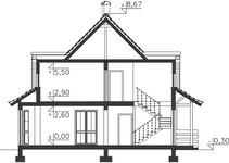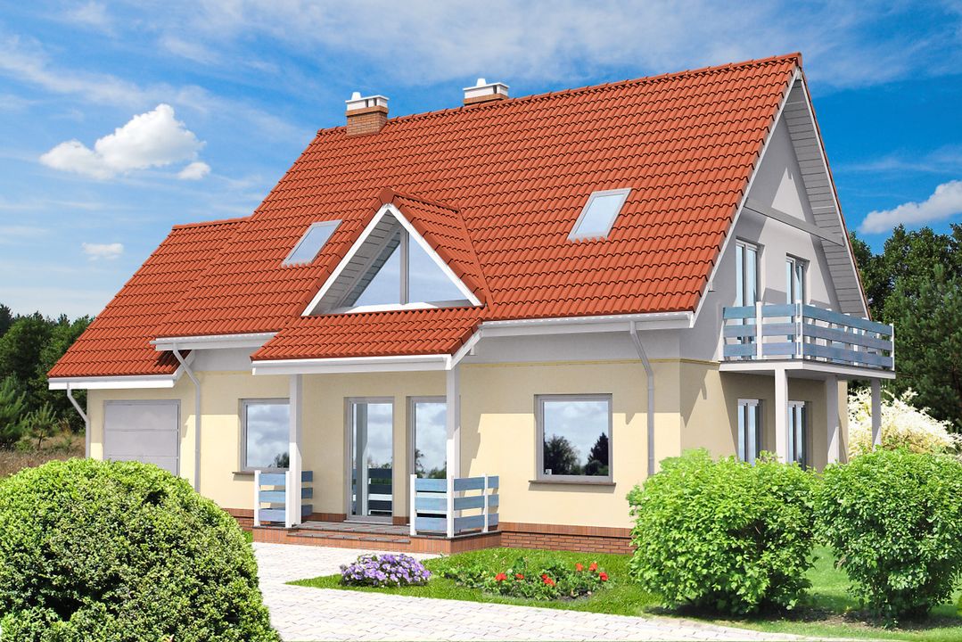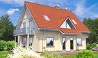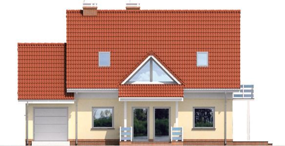 Technologia: domu standardowego. Ściany zewnętrzne: Ściana dwuwarstwowa z betonu komórkowego lub ceramiki poryzowanej „Porotherm” (Wienerberger) lub bloczków keramzyto - betonowych grubości, 34 - 35 cm o wsp. Uo = 0,25 - 0,29 W/m²K (24 - 25 cm ściana murowana + 10 cm wełna mineralna lub styropian „Termo Organika”, o wsp. λ = 0,042 W/m²K) Fundamenty: Tradycyjne żelbetowe ławy fundamentowe, ściany fundamentowe z bloczków betonowych M6, posadzka na płycie żelbetowej wspartej na ścianach fundamentowych. Izolacja od gruntu: posadzki na płycie z twardego nienasiąkliwego styropianu gr 20cm. Ściany wewnętrzne: nośne j.w. w zależności od zastosowanej technologii ścian zewnętrznych działowe szkieletowe okładane płytami gipsowo kartonowymi Strop: Gęstożebrowy typu Porotherm. Konstrukcja dachu: Tradycyjna więźba drewniana wykonana metodą ciesielską Pokrycie dachowe: Dachówka cementowa, „Braas” (Monier) lub ceramiczna „Koramic” (Wienerberger). Schody: Schody wewnętrzne drewniane na drewnianych belkach policzkowych. Można zastosować schody gotowe kupowane wg wysokości i montowane przez specjalistyczną firmę. Elewacje: tynki silikonowe lub akrylowe, podmurówki wykończone np. płytką klinkierową szczyty i wstawki z drewna lub tynkowane. Instalacje: grzewcza i przygotowania ciepłej wody użytkowej: gazowa z zastosowaniem kotła kondensacyjnego typu Vitodens 200 (Viessmann) instalacje c.o. z zast. systemów „Purmo” ogrzewanie podłogowe łazienek - elektryczna meta grzejna Izolacje termiczne: z wełny mineralnej „Isover” lub ze styropianu „Termo Organika” Kominy: W technologii Schiedel. Stolarka okienna i drzwiowa: Okna PVC Schüco Corona SI 82 o wsp. Uo = 0,6 W/m²K dla szyb i Uo = 1,0-1,2 W/m²K dla ramy, wsp. gn = 0,5. Okna połaciowe firmy „Fakro” - FTT Thermo o wsp. Uo = 0,5 W/m²K dla szyb i Uo = 0,94 W/m²K dla ramy, wsp. gn = 0,62. Drzwi zewnętrzne firmy „Hörmann” o całkowitym wsp. Uo = 1,3 W/m²K. Brama garażowa firmy „Hörmann” o całkowitym wsp. Uo = 1,3 W/m²K.
