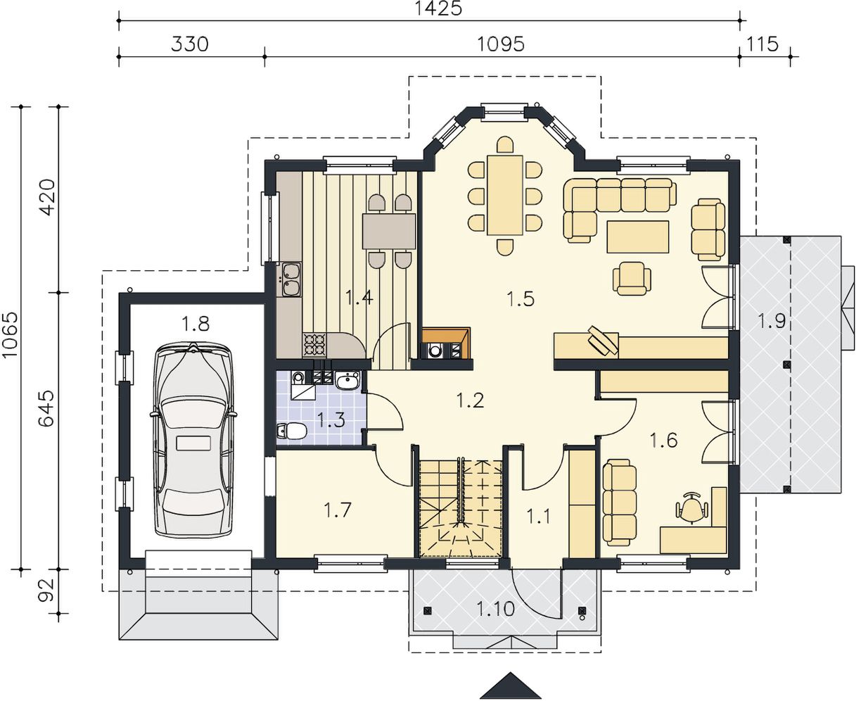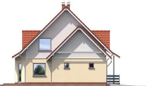 Graficzne opracowanie rzutów poglądowych widocznych na karcie projektu zostało wykonane przez Extradom.pl. Prezentowane przez Extradom.pl wizualizacje wykonane zostały przez autora projektu i należy poczytywać je jedynie za przykład i propozycję wykończenia, wizję architektoniczną autora projektu. Ostateczne wykończenie budynku może nastąpić na wiele sposobów. Szczegółowe rozwiązania zastosowane w oferowanej dokumentacji - w tym również ilość, lokalizacje i wygląd okien, drzwi, kominów - mogą w niewielkim stopniu różnić się od prezentowanej wizualizacji budynku.