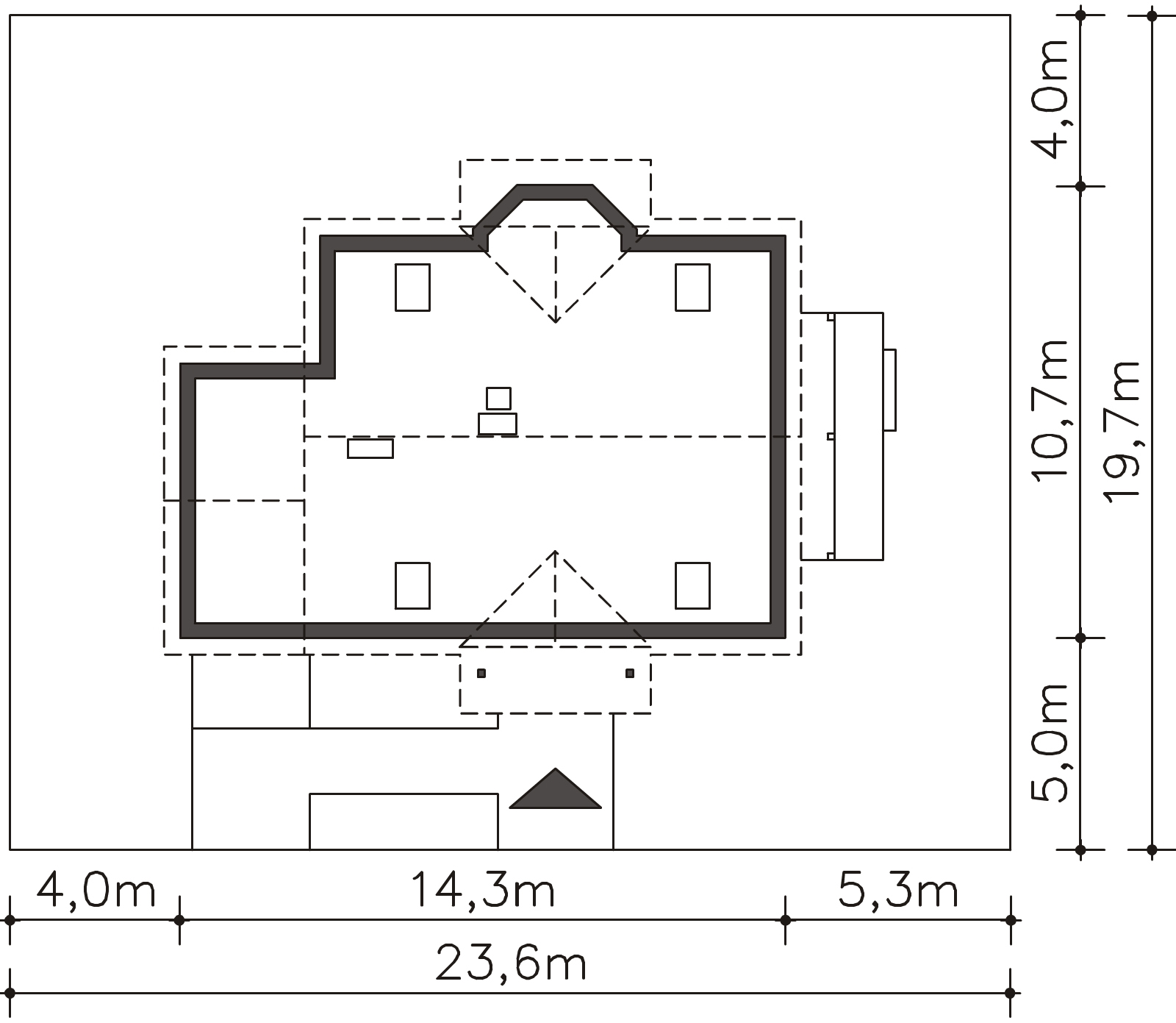 Ze względu na dostosowanie projektu do aktualnych norm wymiary budynku mogą ulec zmianie.
