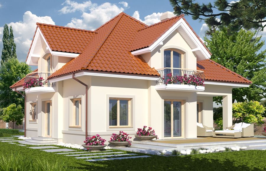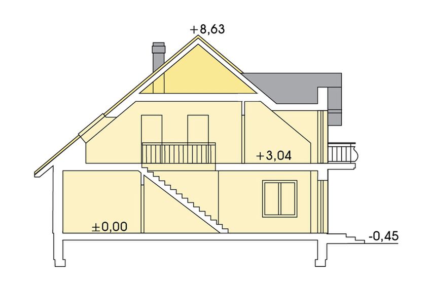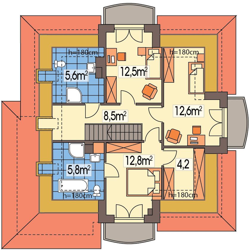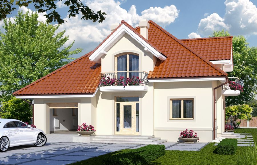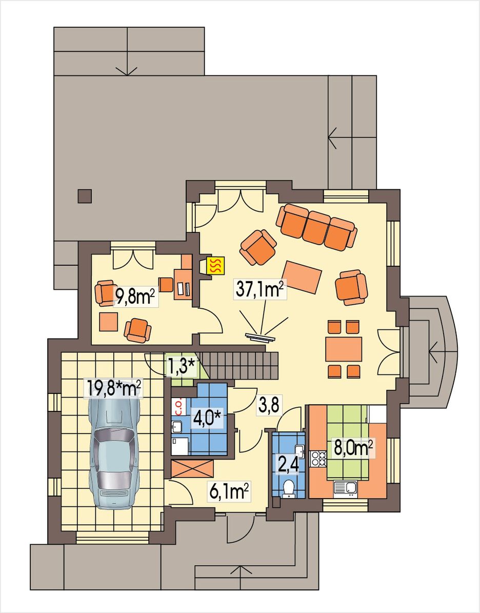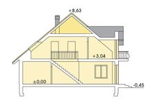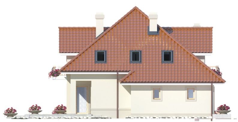 Graficzne opracowanie rzutów poglądowych widocznych na karcie projektu zostało wykonane przez Extradom.pl. Prezentowane przez Extradom.pl wizualizacje wykonane zostały przez autora projektu i należy poczytywać je jedynie za przykład i propozycję wykończenia, wizję architektoniczną autora projektu. Ostateczne wykończenie budynku może nastąpić na wiele sposobów. Szczegółowe rozwiązania zastosowane w oferowanej dokumentacji - w tym również ilość, lokalizacje i wygląd okien, drzwi, kominów - mogą w niewielkim stopniu różnić się od prezentowanej wizualizacji budynku.