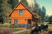 Dom budowany w technologii drewnianej. Dach o konstrukcji drewnianej pokryty gontem lub dachówką ceramiczną. Charakter domu najbardziej odpowiada krajobrazowi górskiemu lub leśnemu. Można go wykorzystywać jako dom całoroczny po dodatkowym ociepleniu elewacji. Wykończenie Ściany zewnętrzne drewniane.