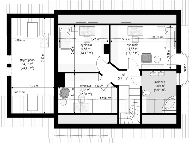 Poddasze - 53,62 m²