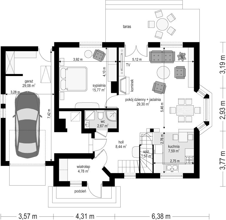 PROJEKT Z BUDOWĄ Istnieje możliwość zaadaptowania tego projektu do technologii prefabrykowanej/modułowej i budowy nawet w 6 miesięcy ze stałym kosztem budowy