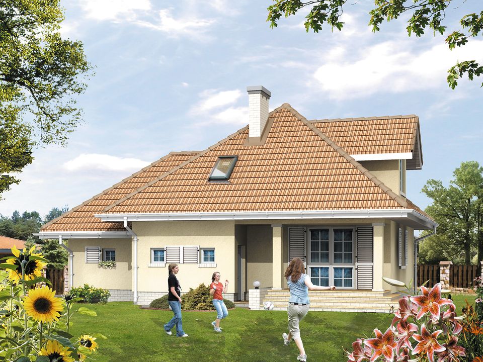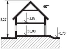 Dach: dachówka, kąt nachylenia 40°. Stropy: żelbetowe, wylewane. Ściany: 2-warstwowe - pustak ceramiczny + styropian. Ogrzewanie: gazowe.