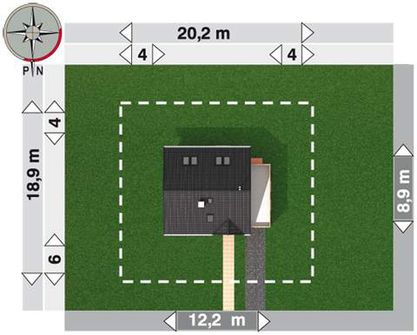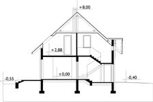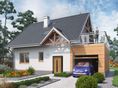 Graficzne opracowanie rzutów poglądowych widocznych na karcie projektu zostało wykonane przez Extradom.pl. Prezentowane przez Extradom.pl wizualizacje wykonane zostały przez autora projektu i należy poczytywać je jedynie za przykład i propozycję wykończenia, wizję architektoniczną autora projektu. Ostateczne wykończenie budynku może nastąpić na wiele sposobów. Szczegółowe rozwiązania zastosowane w oferowanej dokumentacji - w tym również ilość, lokalizacje i wygląd okien, drzwi, kominów - mogą w niewielkim stopniu różnić się od prezentowanej wizualizacji budynku.