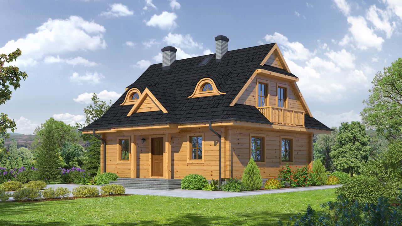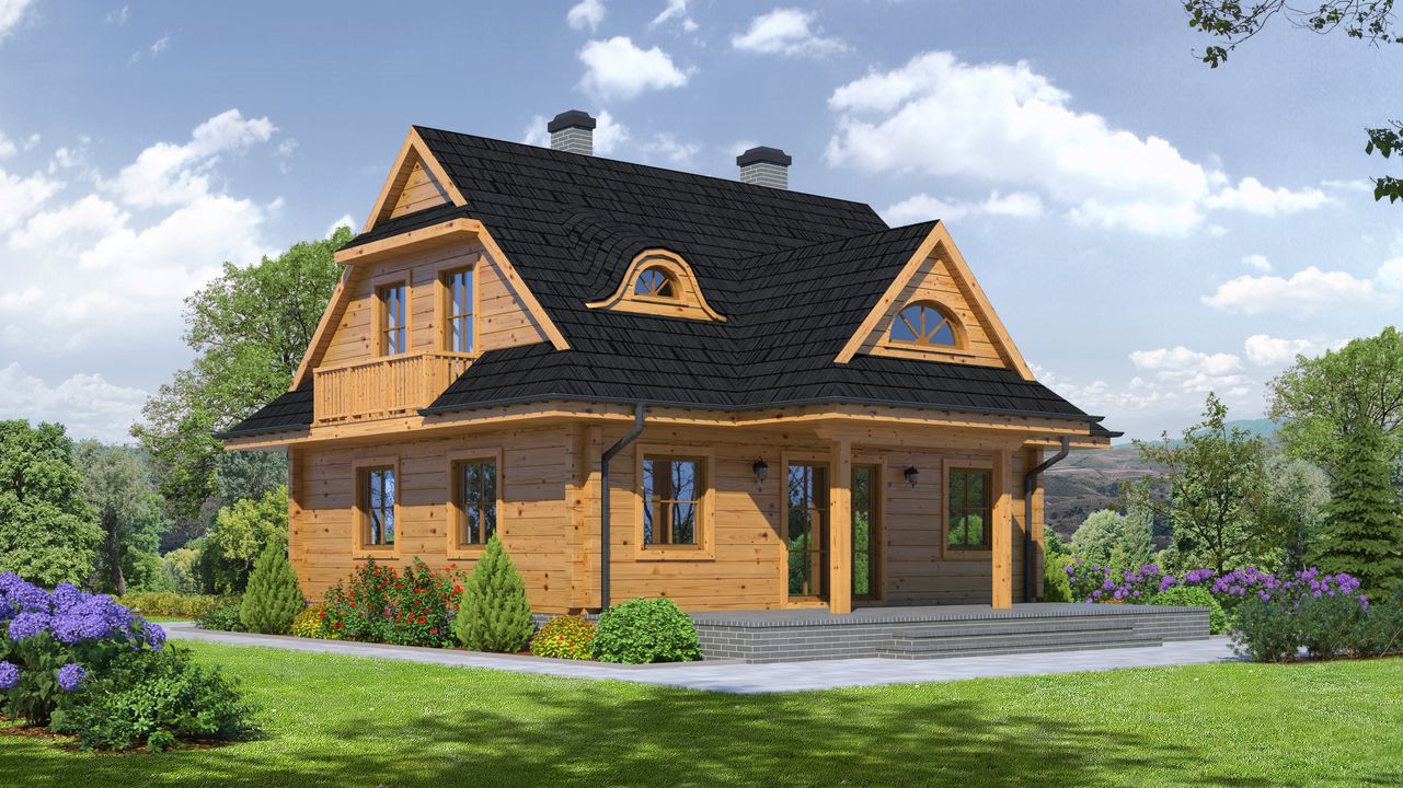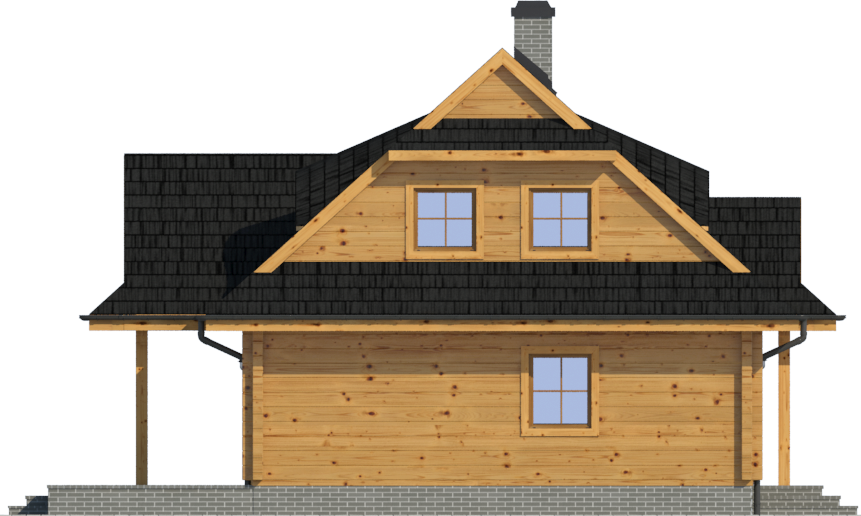 Strop: drewniany. Pokrycie dachu: dachówka gontopodobna Gerard Corona. Ściany zewnętrzne: płazy drewniane + wełna mineralna + deska. Ściany wewnętrzne: płazy drewniane. Typ ogrzewania: kocioł gazowy lub kocioł na paliwo stałe.
