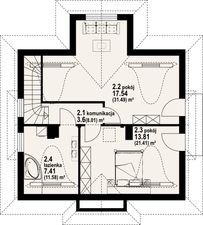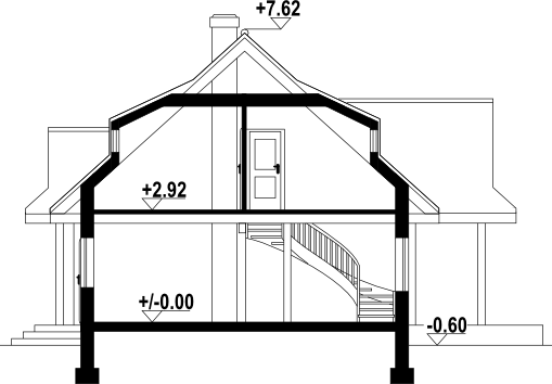 Graficzne opracowanie rzutów poglądowych widocznych na karcie projektu zostało wykonane przez Extradom.pl. Prezentowane przez Extradom.pl wizualizacje wykonane zostały przez autora projektu i należy poczytywać je jedynie za przykład i propozycję wykończenia, wizję architektoniczną autora projektu. Ostateczne wykończenie budynku może nastąpić na wiele sposobów. Szczegółowe rozwiązania zastosowane w oferowanej dokumentacji - w tym również ilość, lokalizacje i wygląd okien, drzwi, kominów - mogą w niewielkim stopniu różnić się od prezentowanej wizualizacji budynku.