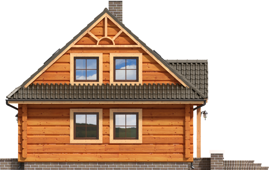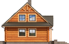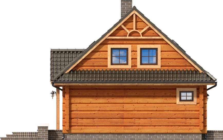 Wys. ścianki kolankowej 0.66 m Ilość drewna na więźbę 4.9 m³. Strop: drewniany. Pokrycie dachu: dachówka gontopodobna z posypką Gerard Corona. Ściany wewnętrzne: płazy drewniane. Ściany zewnętrzne: płazy drewniane + wełna mineralna + deska. Typ ogrzewania: kocioł gazowy.