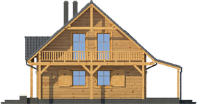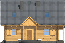 Wysokość ścianki kolankowej: 0.92 m. Strop: drewniany. Pokrycie dachu: dachówka gontopodobna Gerard Corona. Ściany zewnętrzne: płazy drewniane + wełna mineralna + deska. Ściany wewnętrzne: płazy drewniane. Typ ogrzewania: kocioł gazowy lub kocioł na paliwo stałe. Inne: okna połaciowe Fakro.