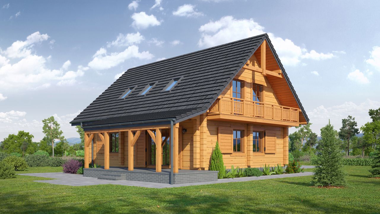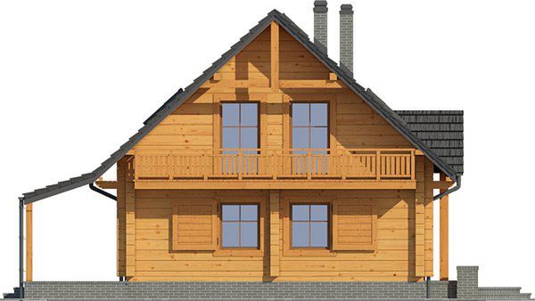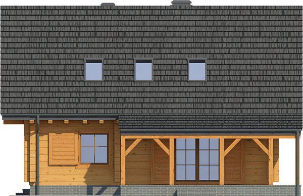 Wysokość ścianki kolankowej: 0.89 m. Strop: drewniany. Pokrycie dachu: dachówka gontopodobna Gerard Corona. Ściany zewnętrzne: płazy drewniane + wełna mineralna + deska. Ściany wewnętrzne: płazy drewniane. Typ ogrzewania: kocioł gazowy lub kocioł na paliwo stałe. Inne: okna połaciowe Fakro.